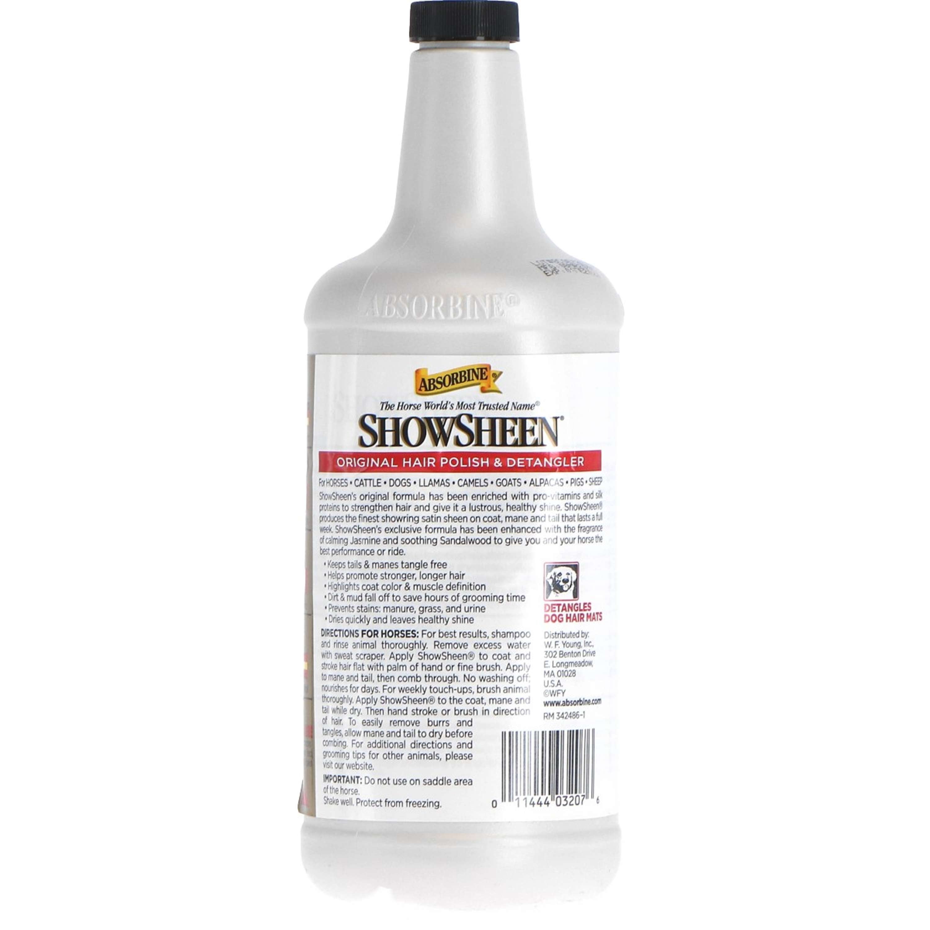 ¿Tu caballo merece el brillo que le hará ser la estrella del establo? El desenredante Absorbine Showsheen está aquí para darte esa ayuda extra. Con este spray, incluso las crines más rebeldes se transforman en suaves y resplandecientes. ¡Es como tener un estilista profesional en tus manos!
