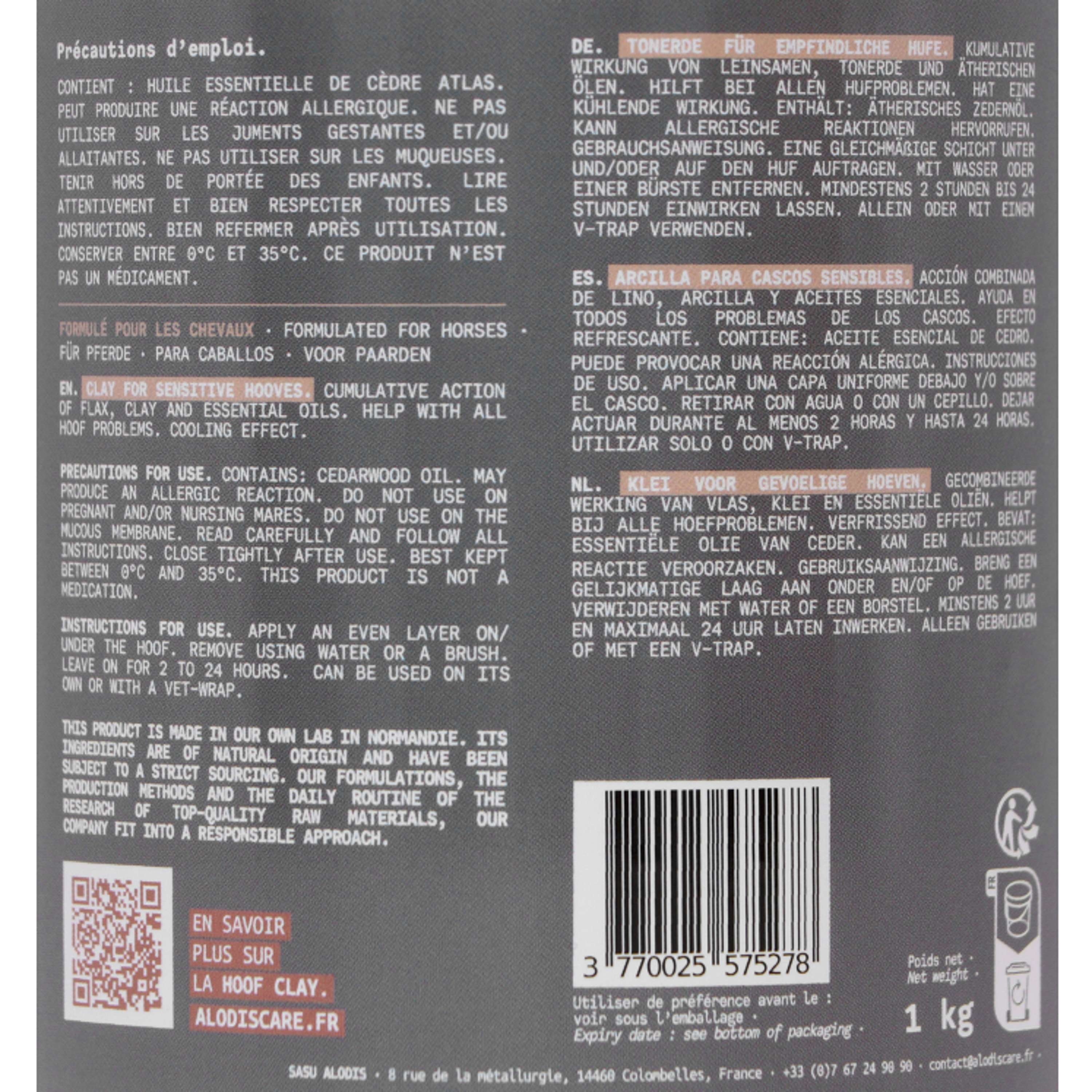 Formulada con ingredientes naturales, esta arcilla potencia los cuidados para los cascos. Ayuda a preservar su estado y protege contra factores externos que afectan su bienestar.
