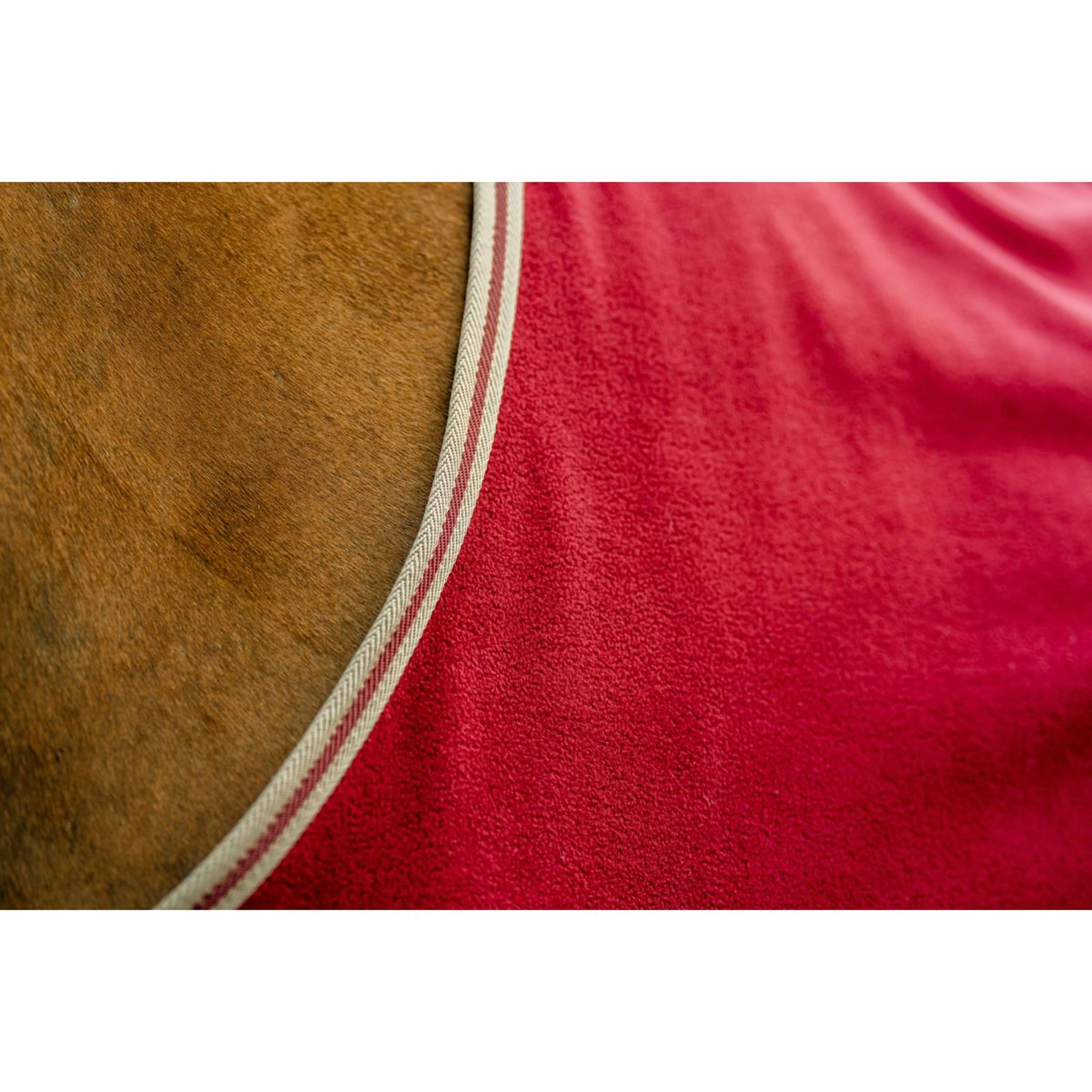 Este forro polar absorbe la humedad de manera eficaz, ayudando a tu caballo a secarse rápidamente sin que pierda calor. Es ideal para evitar enfriamientos tras el ejercicio o después de haber tomado un buen baño.