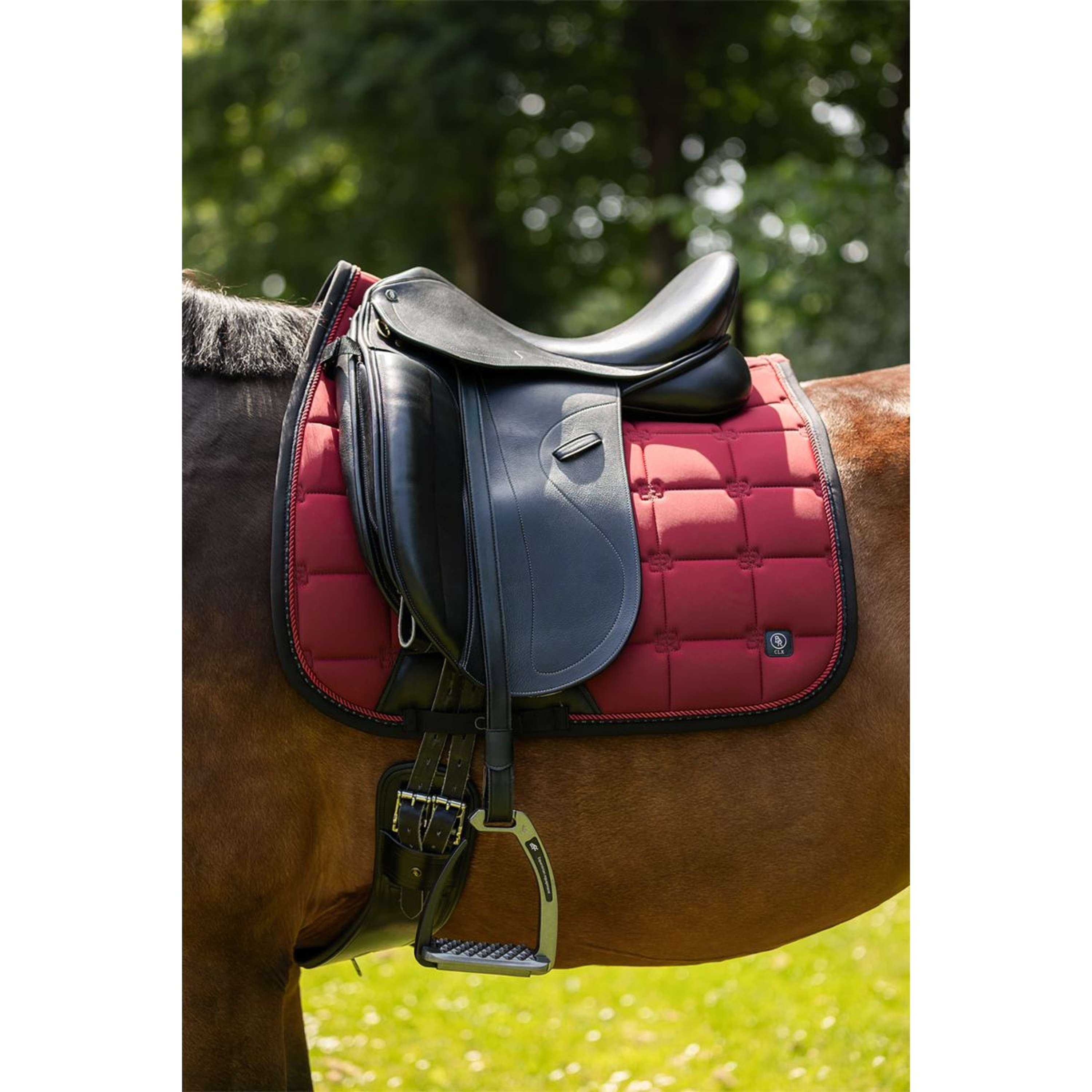 El elegante sudadero CLX, acolchado en cuadros, cuenta con costuras del logo BR para un estilo único y está acabado con dos ribetes sutiles. Está equipado con correas de silla y cincha ajustables con velcro y un refuerzo adicional de cuero sintético en la zona de la cincha.