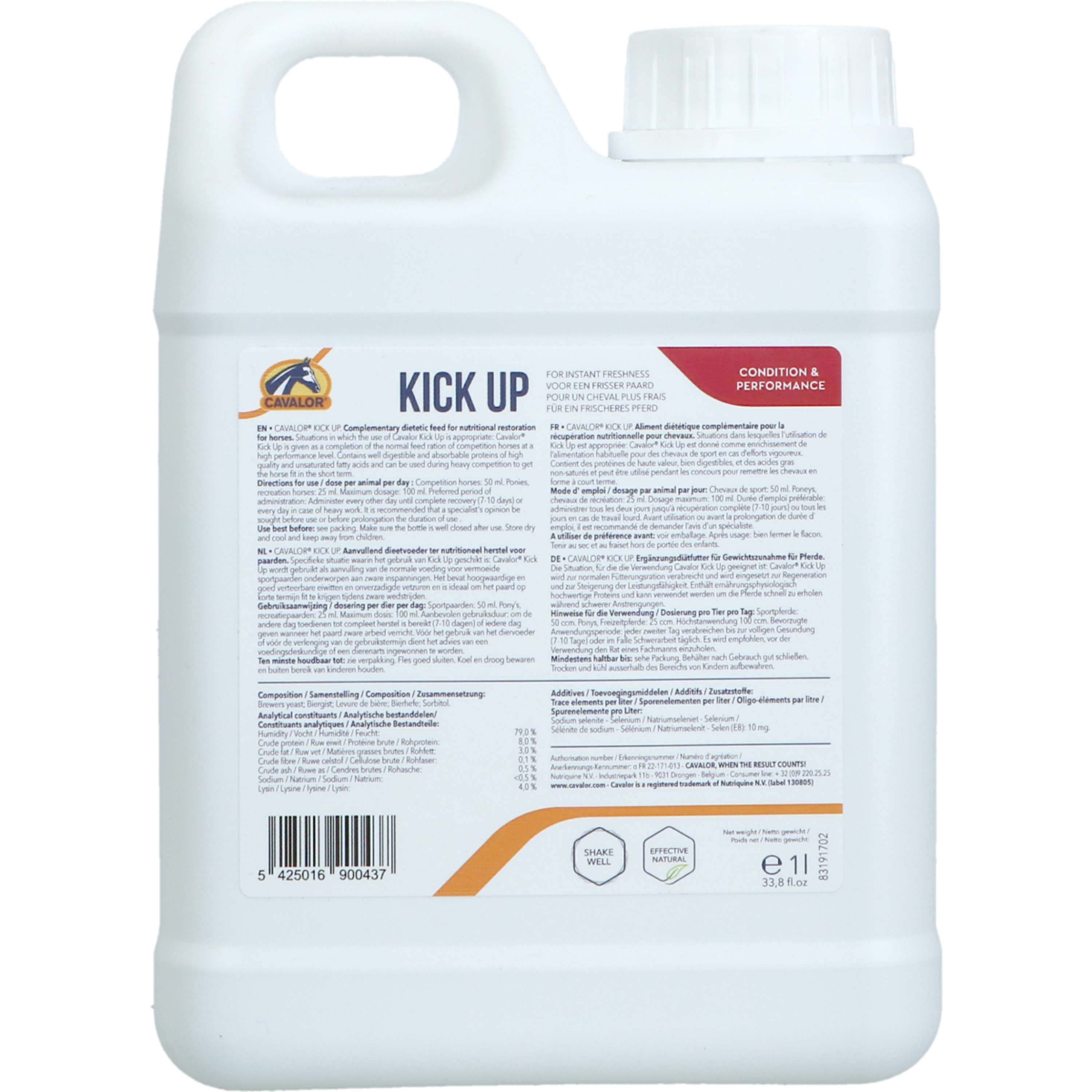 Cavalor Kick Up incluye una fórmula enriquecida con vitaminas esenciales, minerales y antioxidantes que contribuyen al bienestar general del caballo. Estos componentes están diseñados para apoyar su sistema inmunológico y ayudarle a recuperar la energía perdida.