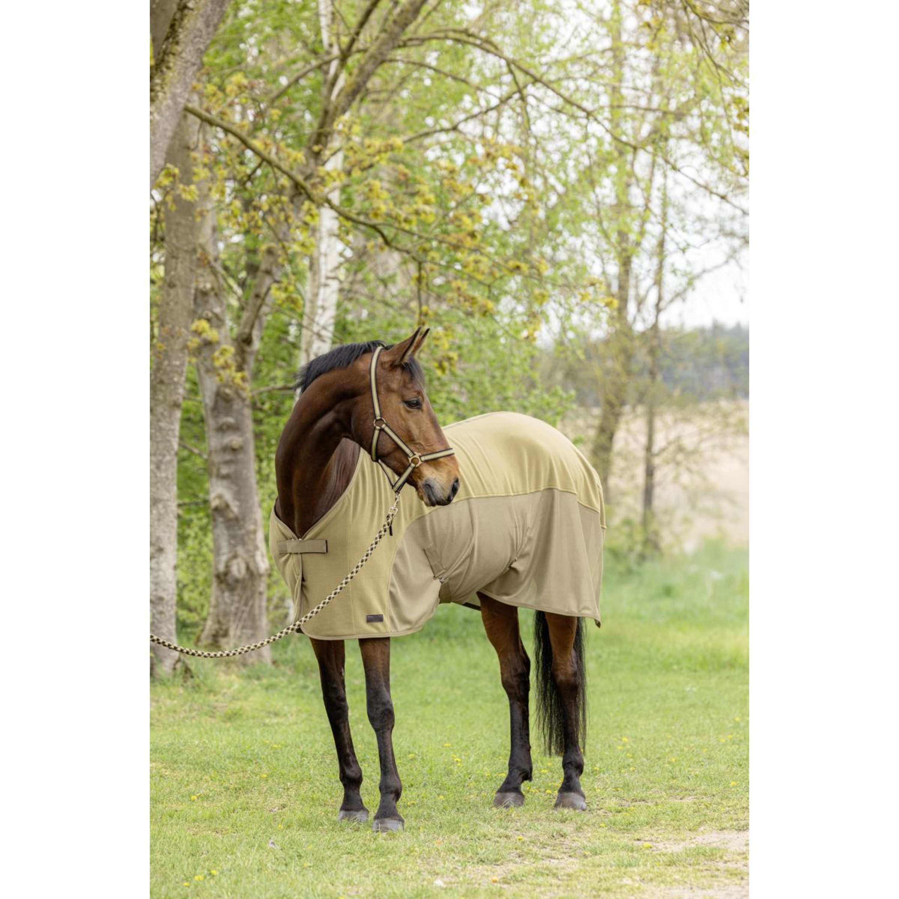 La manta antisudor Covalliero ofrece la combinación perfecta de funcionalidad y comodidad. No solo garantiza un secado rápido después del entrenamiento o durante el transporte, sino que también protege contra moscas e insectos molestos. El tejido de doble capa integrado ofrece una protección óptima a la vez que mantiene la transpirabilidad de la manta. Esto mantiene a su caballo seco mientras suda y protegido de insectos molestos. Manta ligera para transporte y transpiración con hebilla de pecho, correa para la cola y correas cruzadas ajustables y extraíbles.