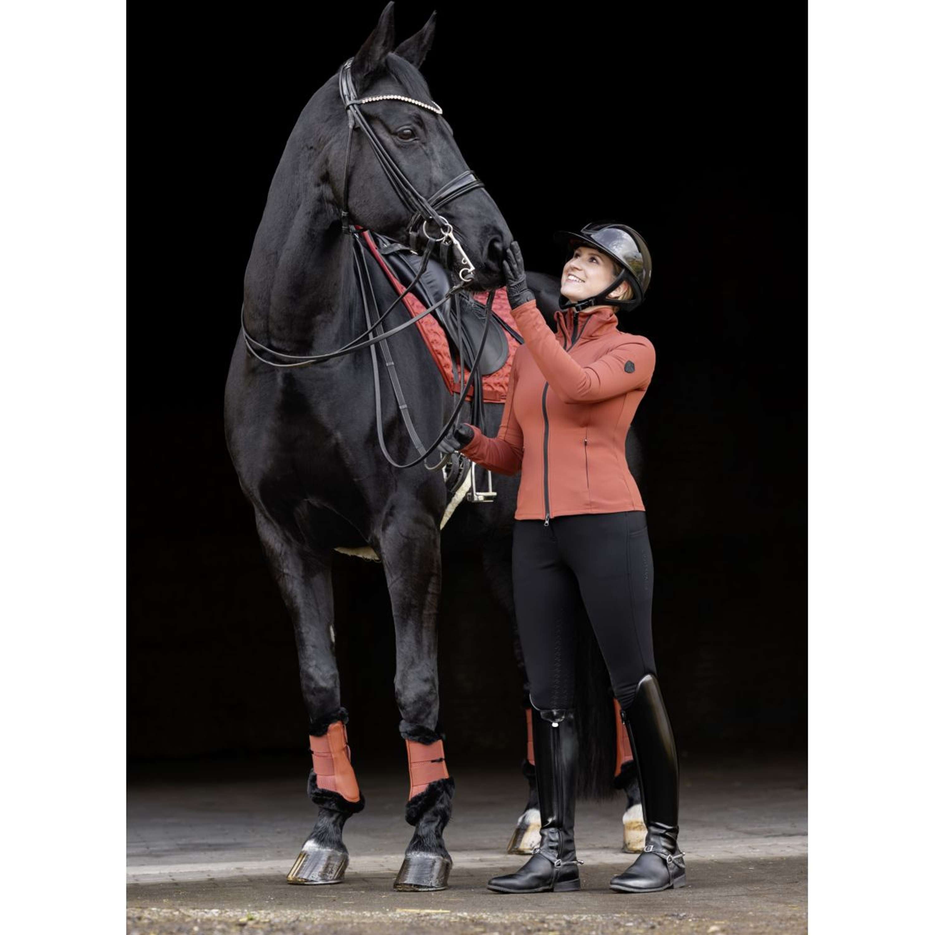 Las suaves polainas ofrecen una protección óptima y la máxima comodidad para las patas del caballo. El práctico cierre de velcro garantiza un ajuste perfecto, mientras que el suave borde de pelo proporciona una agradable protección contra las rozaduras. Gracias al forro de malla transpirable, se previene eficazmente la acumulación de calor para que el caballo se sienta siempre cómodo. Duraderas y amortiguadoras | Para proteger las patas de los caballos | Con cierre de velcro (tallas S y M: dos cierres de velcro, tallas L y XL: tres cierres de velcro) | Con borde de pelo | Malla interior para mayor transpirabilidad | Forma anatómica | Por pares | Material: 100 % poliéster
