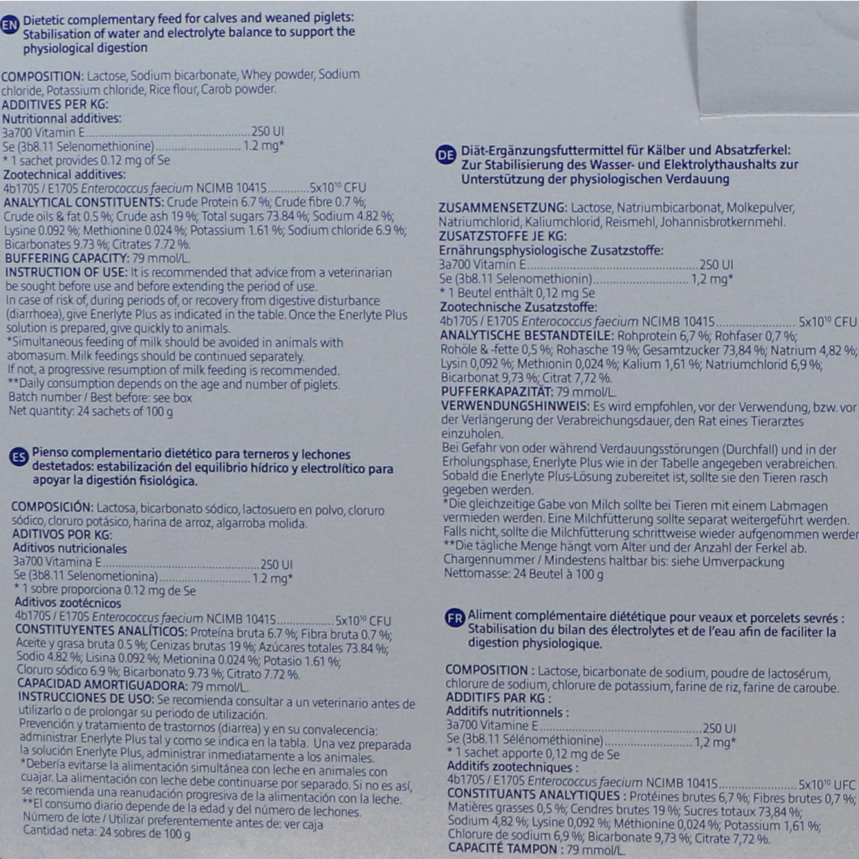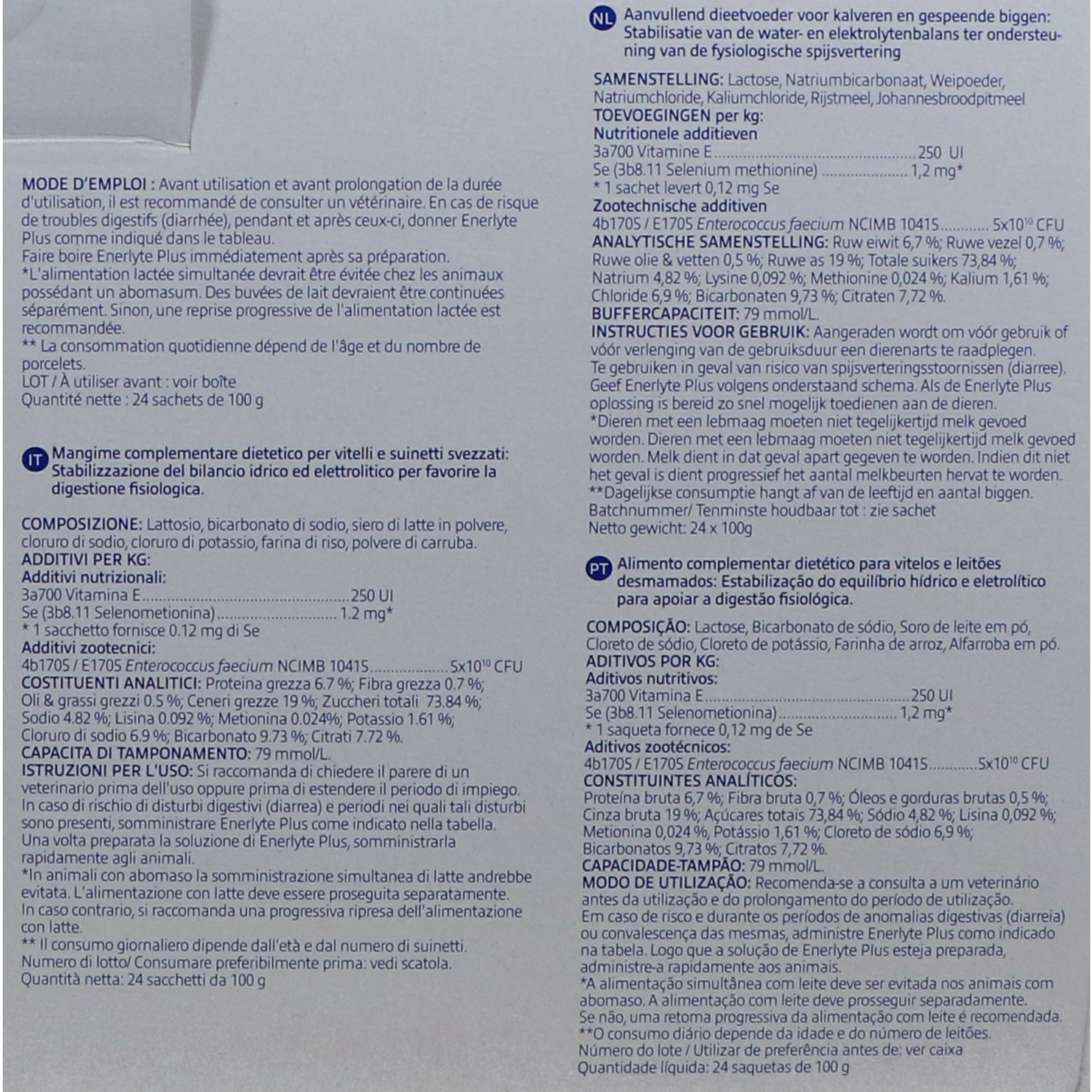 Enerlyte Plus es un suplemento específico para terneros. Siempre sigue las recomendaciones de uso incluidas en el producto para obtener los mejores resultados.