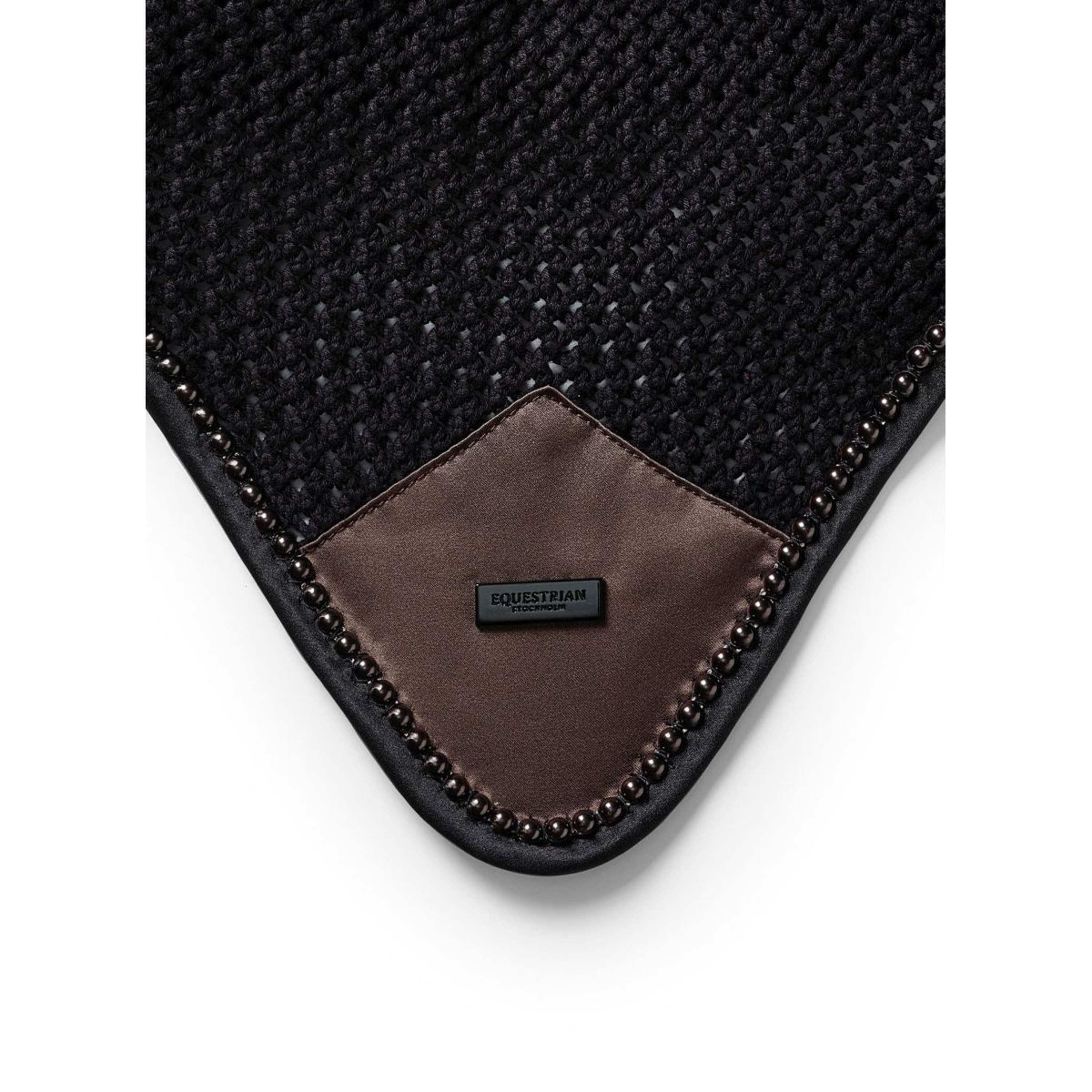 Orejera de ganchillo de lujo en un elegante color negro. Adornado con un parche de satén marrón moca en la parte delantera, acabado en bordes negros, perlas marrones moca y un logotipo negro de Equestrian Stockholm. El gorro de la oreja ofrece protección contra insectos y reducción del ruido. Para mayor comodidad, el tejido es elástico en las orejas. Encaja perfectamente con la mantilla de la colección Modern Mocha.