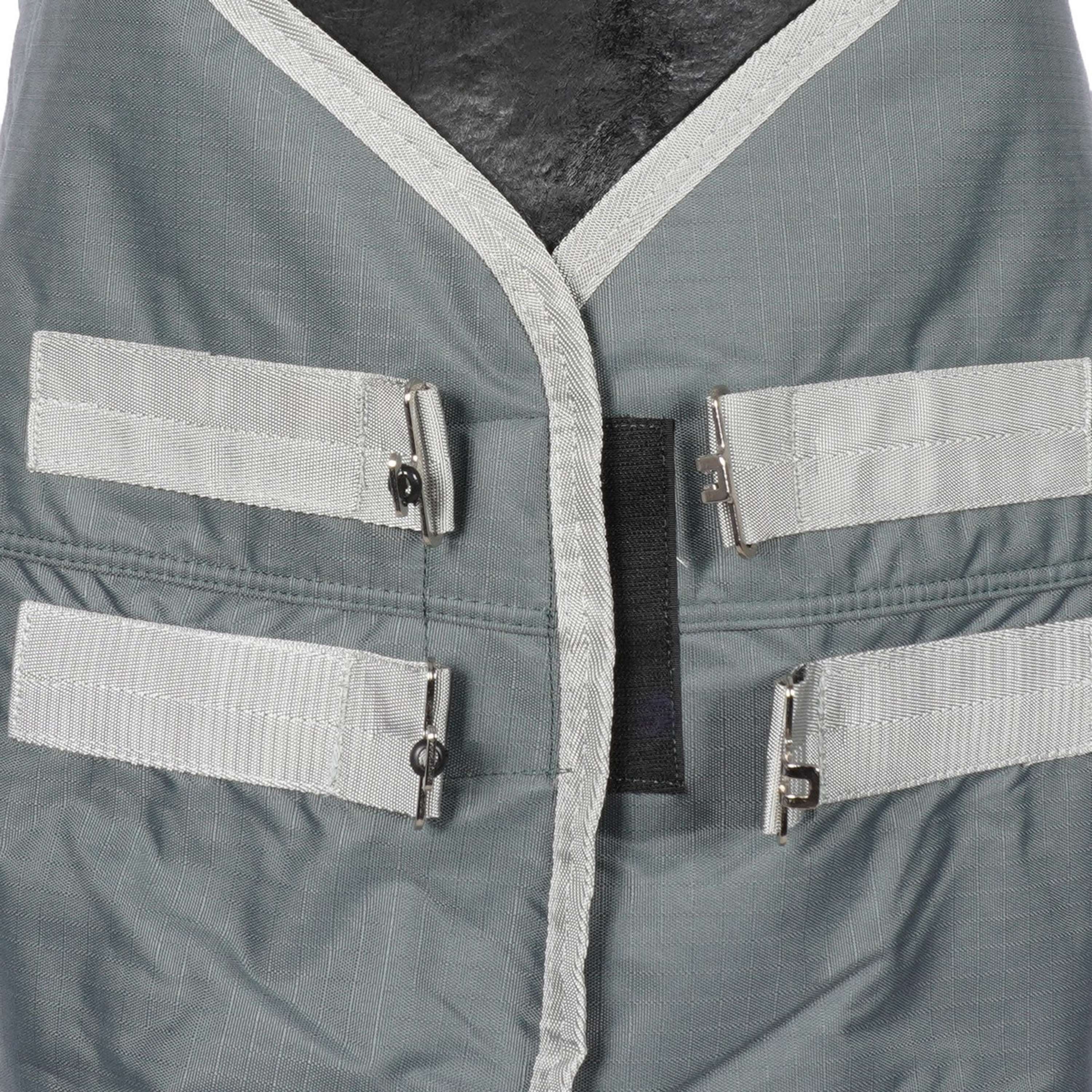 Equipado con cierre frontal ajustable, correas cruzadas debajo del vientre y correas elásticas para las patas, tu caballo estará seguro y su manta permanecerá en su lugar incluso durante los movimientos más enérgicos.
