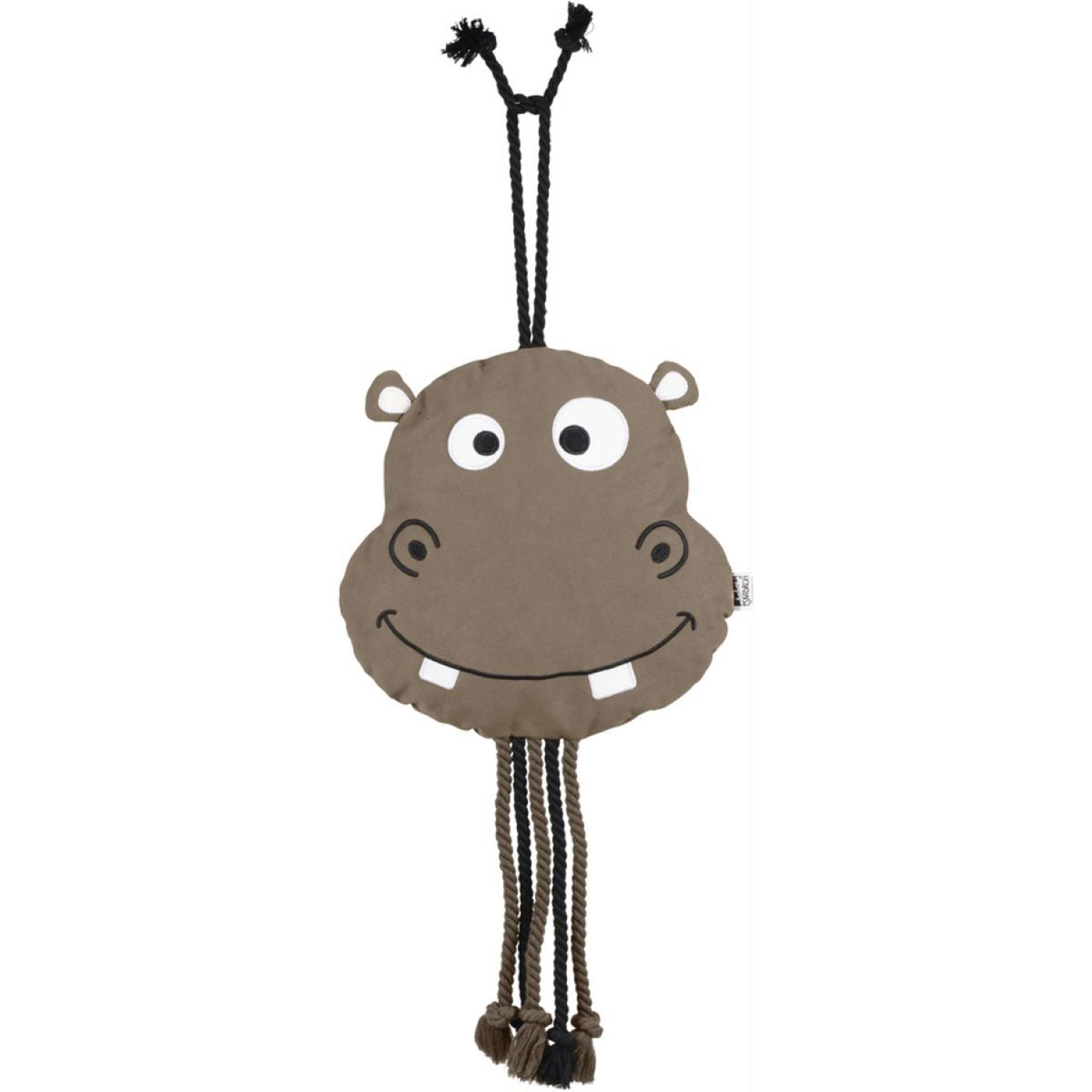 Hecho con materiales de alta calidad y resistencia, este juguete está diseñado para soportar las demandas del uso diario. Su forma de hipopótamo y el color Smoky Taupe lo convierten en un accesorio atractivo que también añade un toque especial a la decoración del establo.