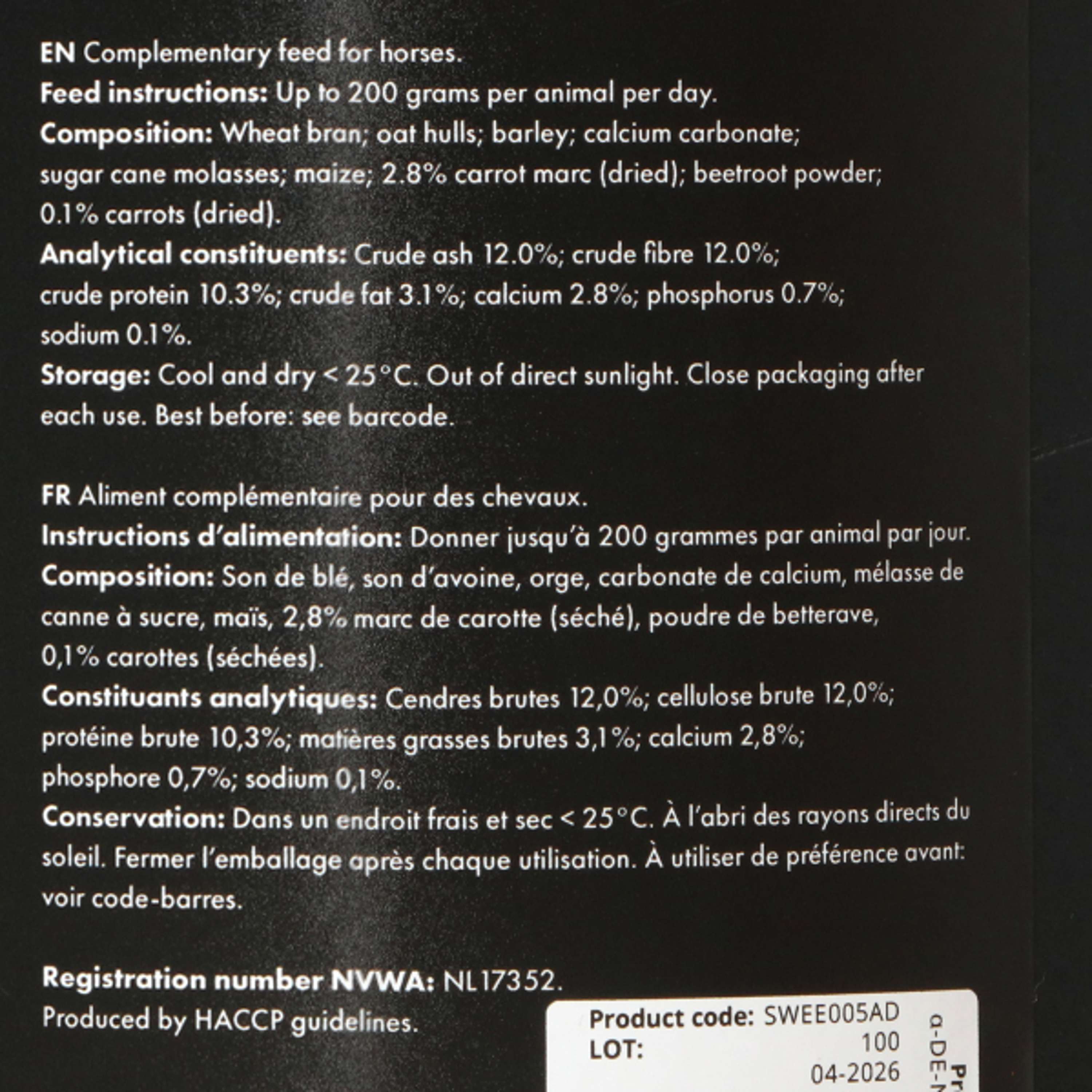 Solo contiene componentes cuidadosamente seleccionados para asegurar que tu caballo disfrute de un sabor auténtico sin aditivos innecesarios. Perfecto para mantener su dieta equilibrada.