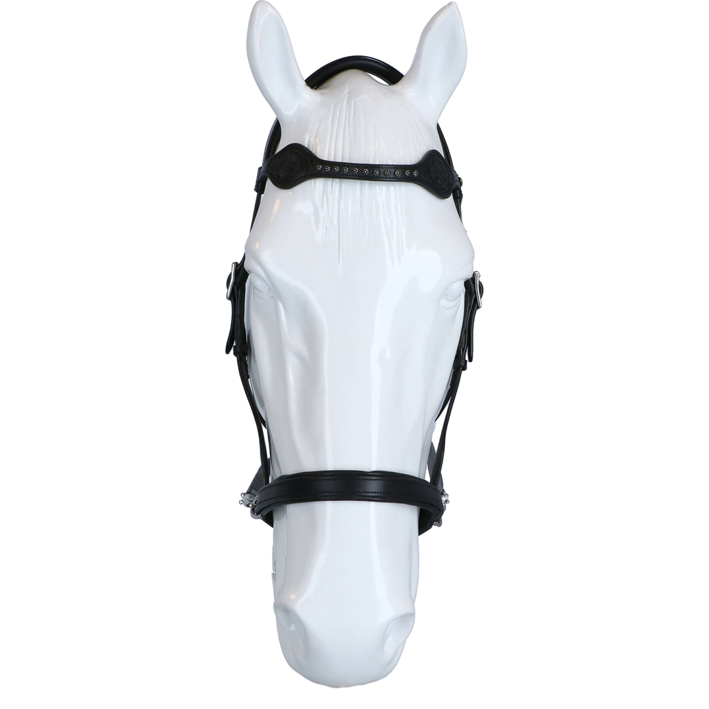 Fabricada con materiales de alta calidad, esta brida asegura durabilidad y confort para tu caballo. Es suficientemente robusta para resistir el uso diario, pero sigue siendo ligera y suave al tacto.