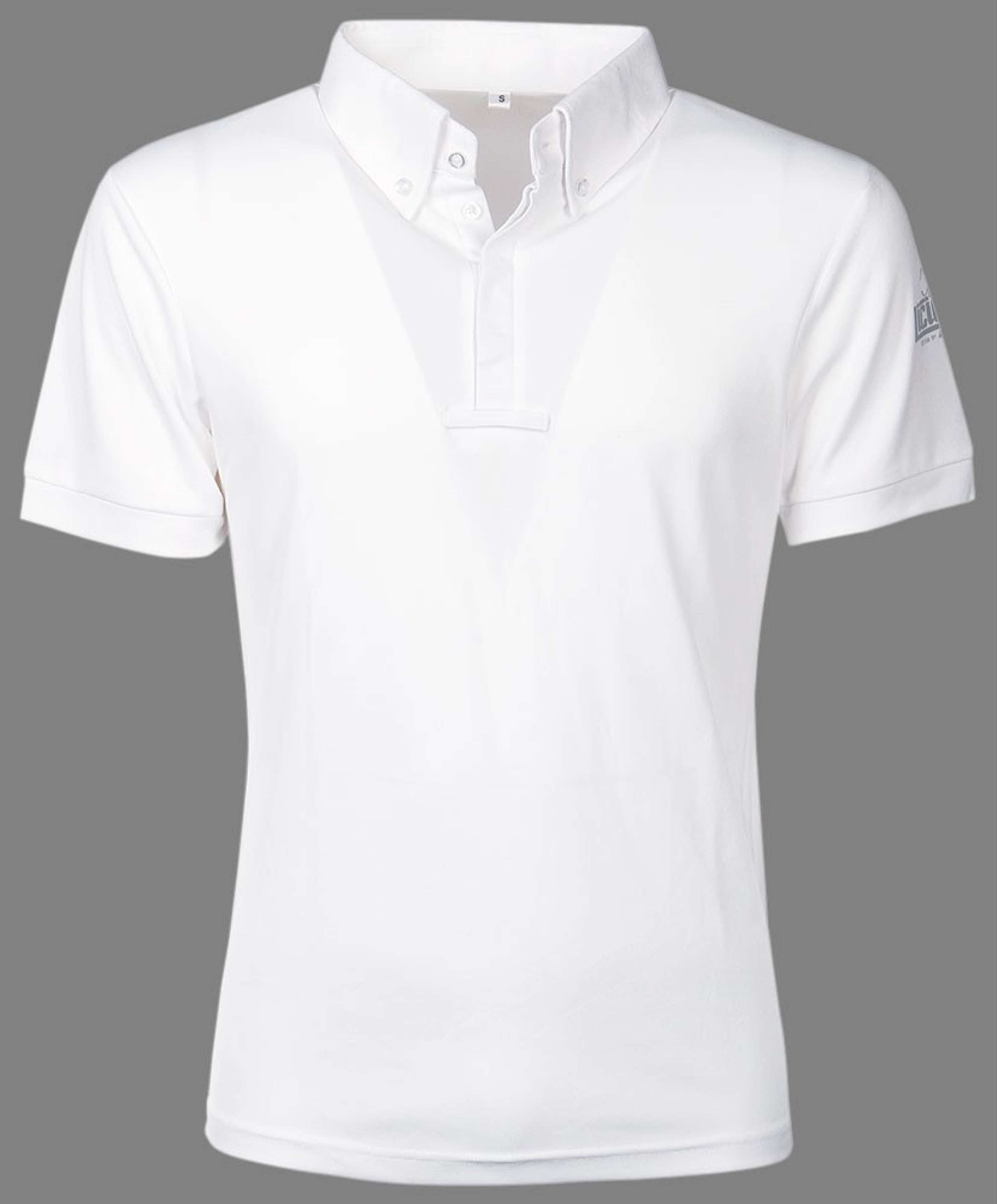 Camisa de competición para hombre con cuello abotonado y trabilla para atar, sutil estampado Liciano en la manga izquierda 100% Micro Poliéster