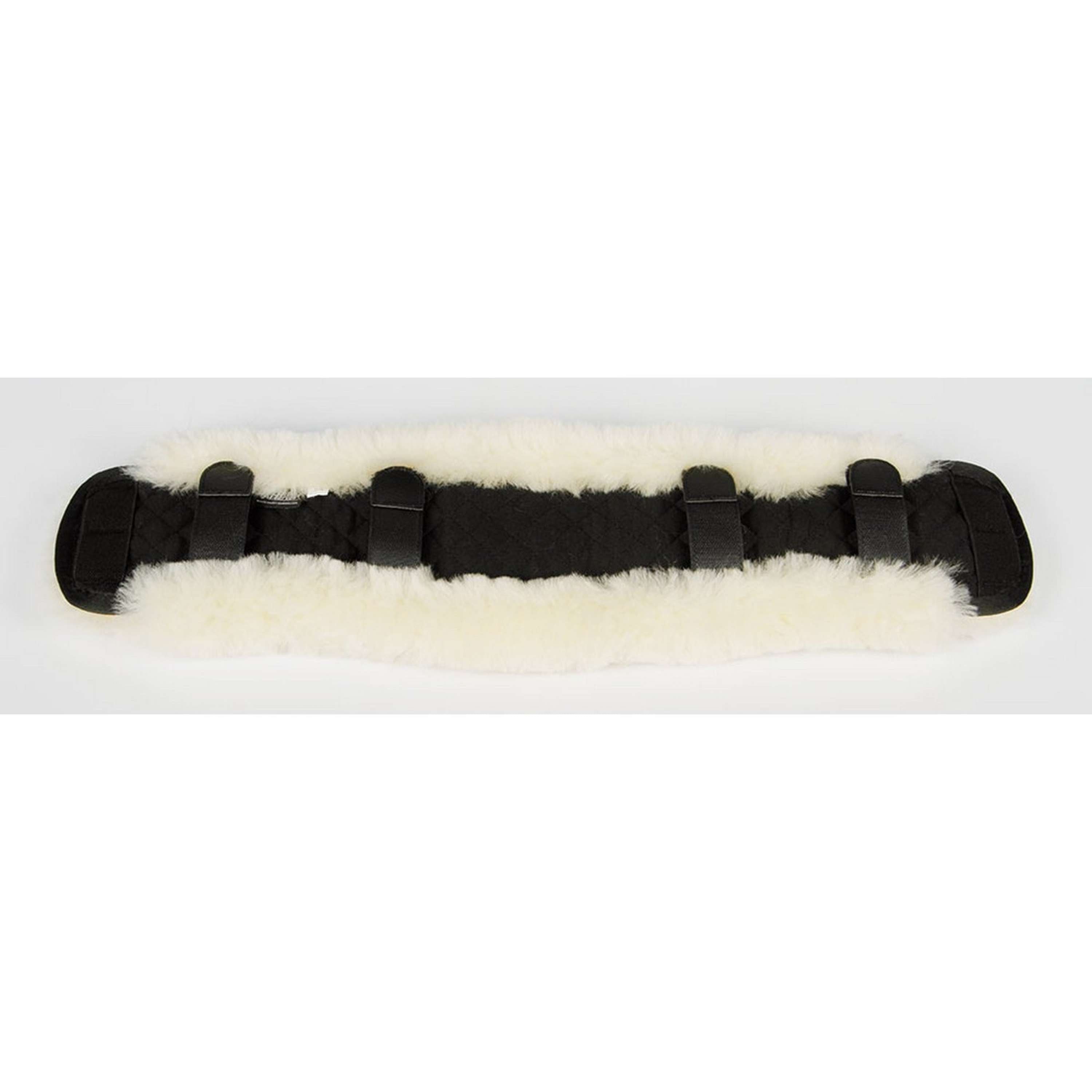 Almohadilla de cincha hecha de 100 % lana merino para proteger la piel sensible del caballo bajo la cincha. Previene la irritación y los puntos de presión. Se fija fácilmente con cierres de velcro para un mejor ajuste. Material: 100 % lana merino