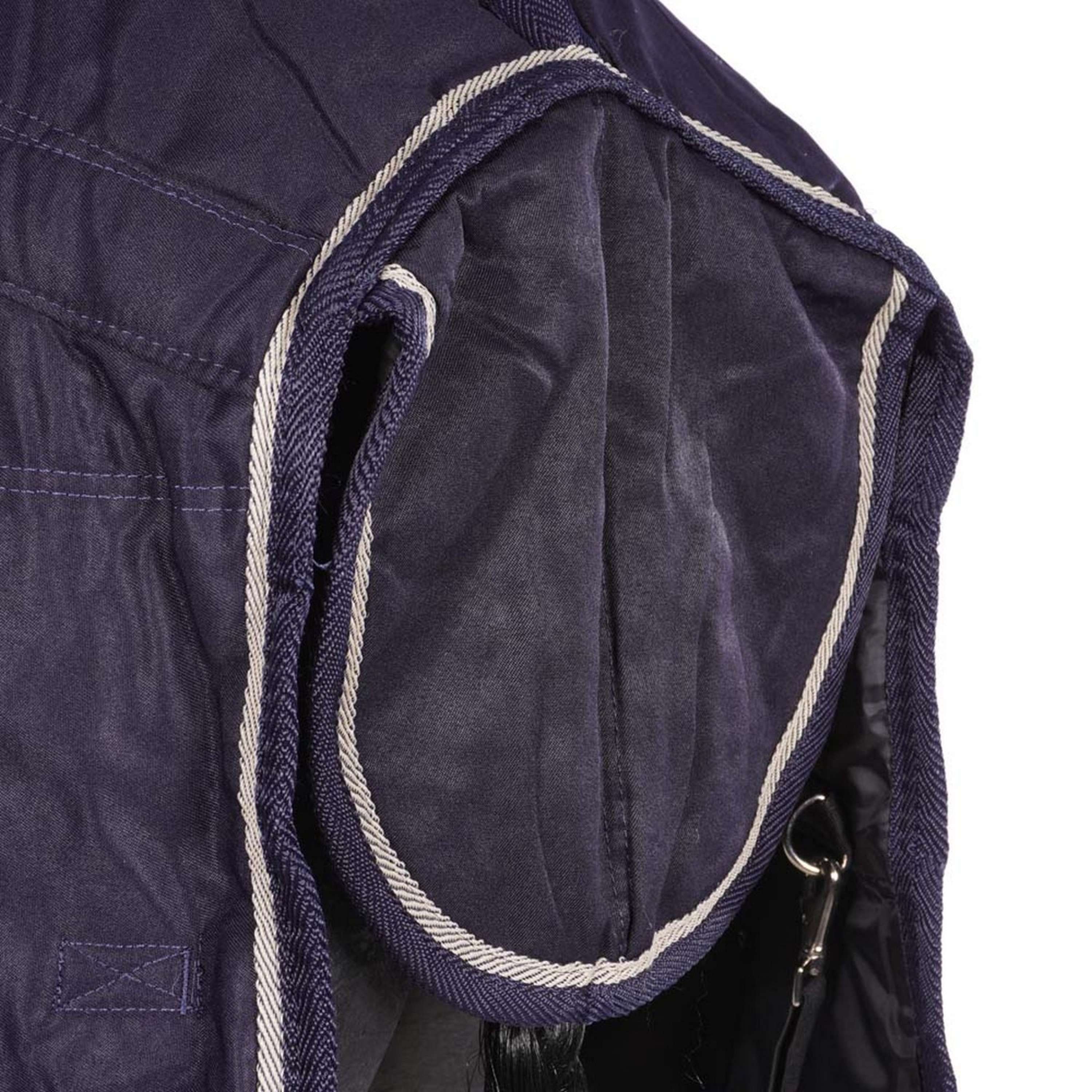 Manta de cuadra Highliner con cuello mini cómodo y ajuste óptimo. Poliéster 300D, relleno de 200 g y forro de poliéster. Con refuerzo, solapa trasera, cinchuelos bajos con inserciones elásticas. Dos cierres frontales y perneras elásticas desmontables. Material: Tejido exterior: 100 % poliéster 300D. Forro: poliéster.