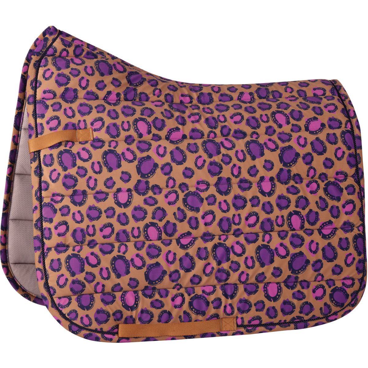 Mantilla de terciopelo con estampado integral y cincha y trabillas para el sillín. Material: 100% poliéster - espuma de 10 mm/relleno de poliéster de 250 g - forro de malla fresca.