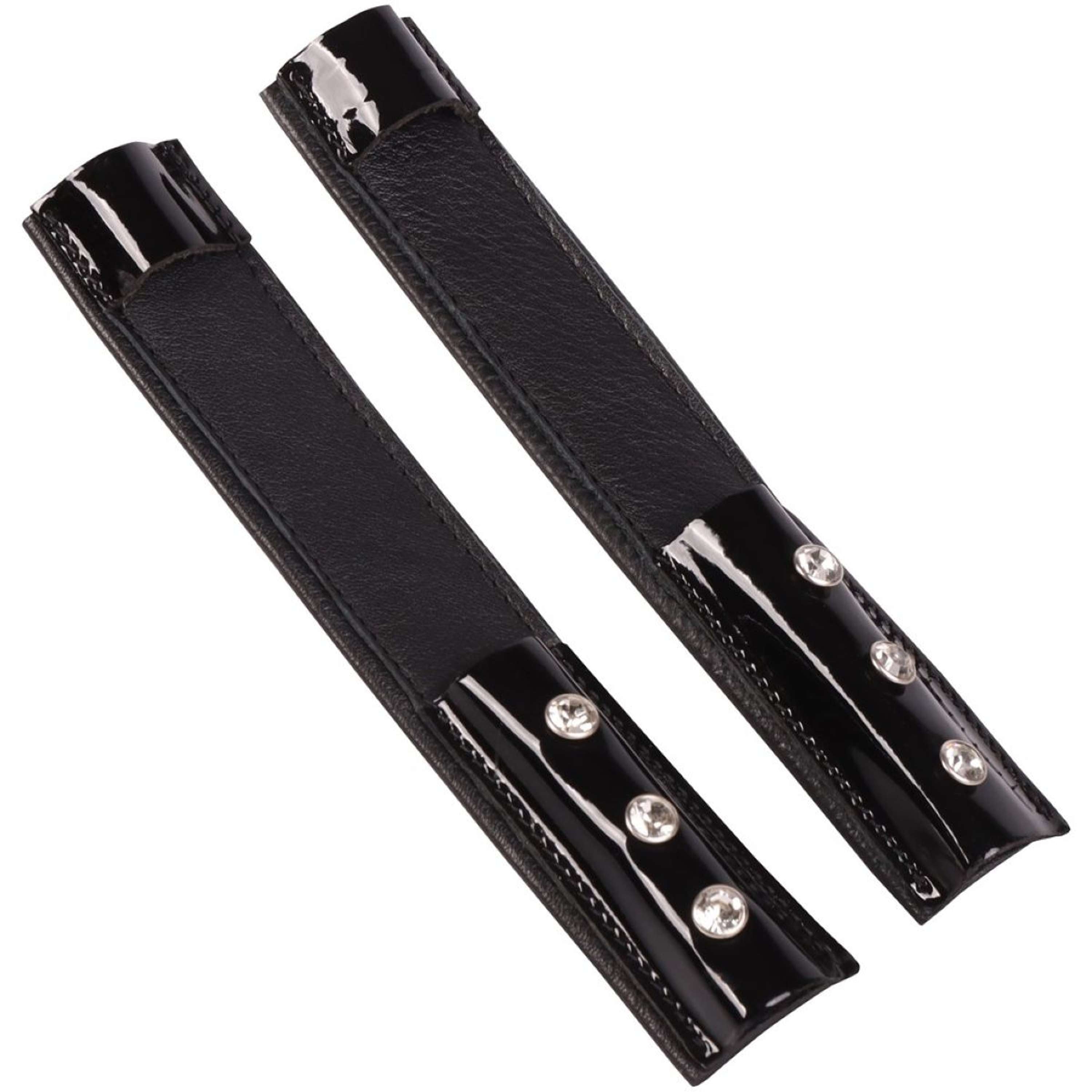 Los protectores de espuelas mantienen las espuelas en su lugar y protegen la bota y la espuela. Presentado con elegantes cristales.