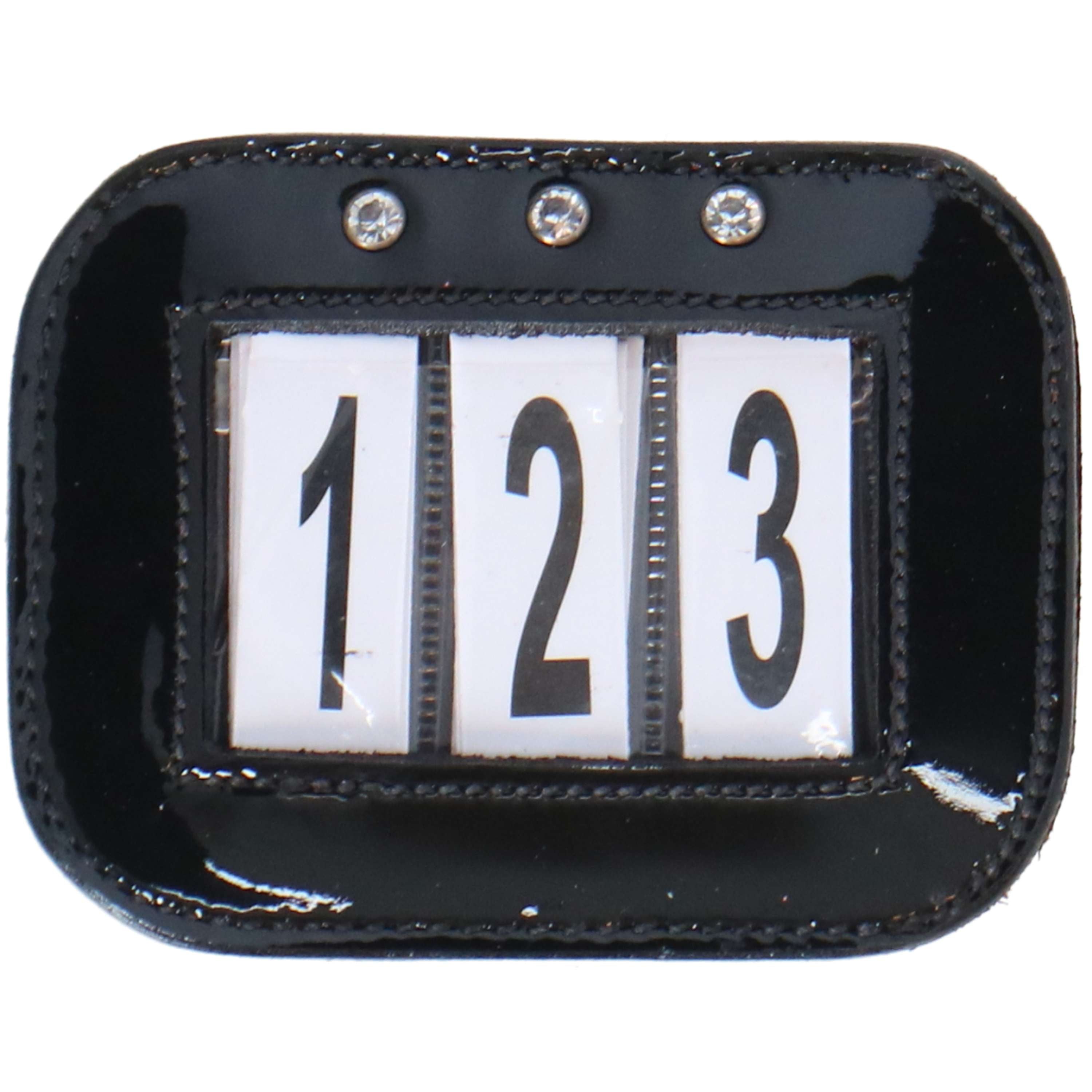 Deja que tu caballo brille con el HB Start Number Showtime. Este elegante número de carrera de charol es perfecto para tus competiciones. Incluye números útiles que puedes cambiar fácilmente.