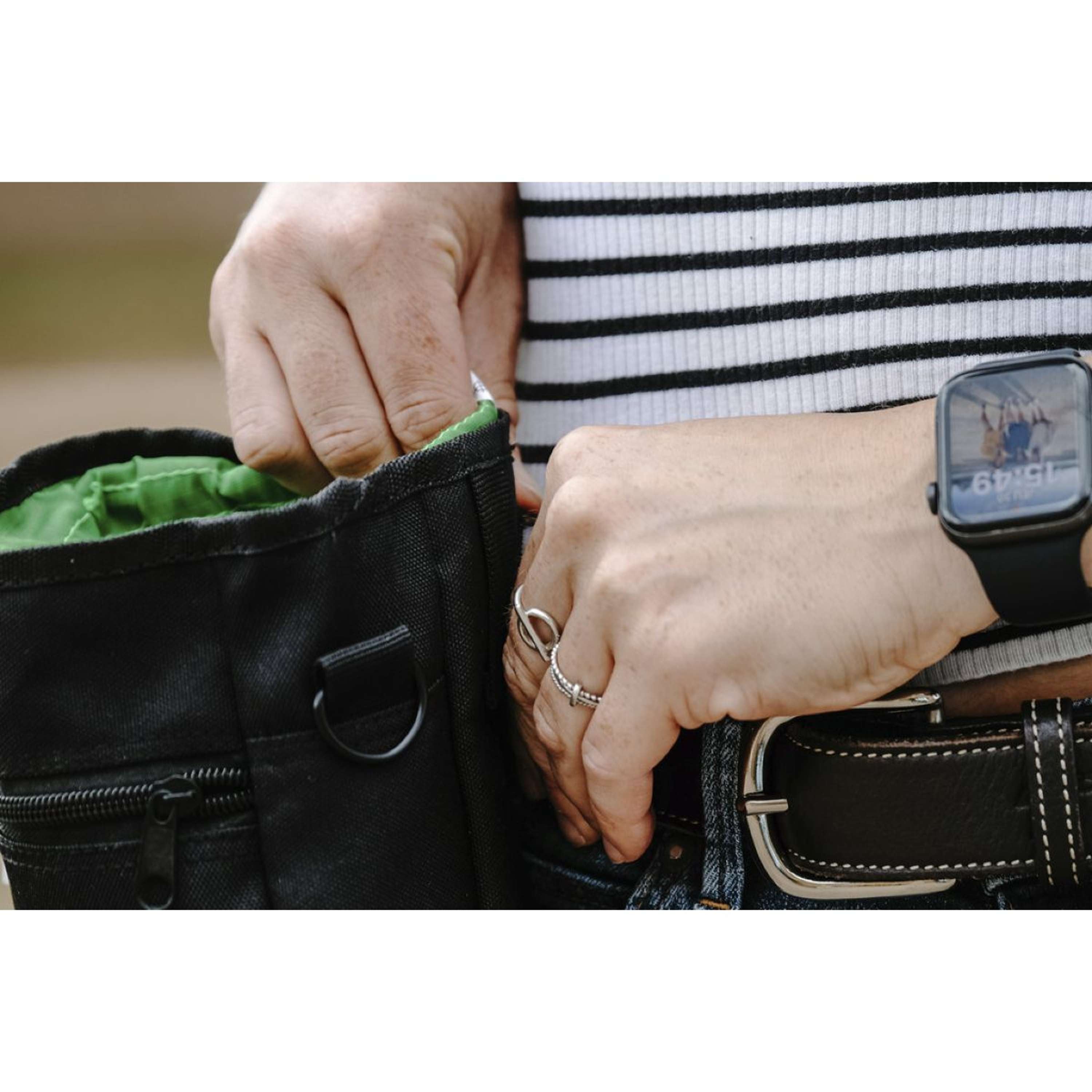 La bolsita viene con un diseño práctico, perfecta para llevarla contigo mientras entrenas o paseas. Con una apertura rápida, sacar las recompensas es súper cómodo y sencillo.