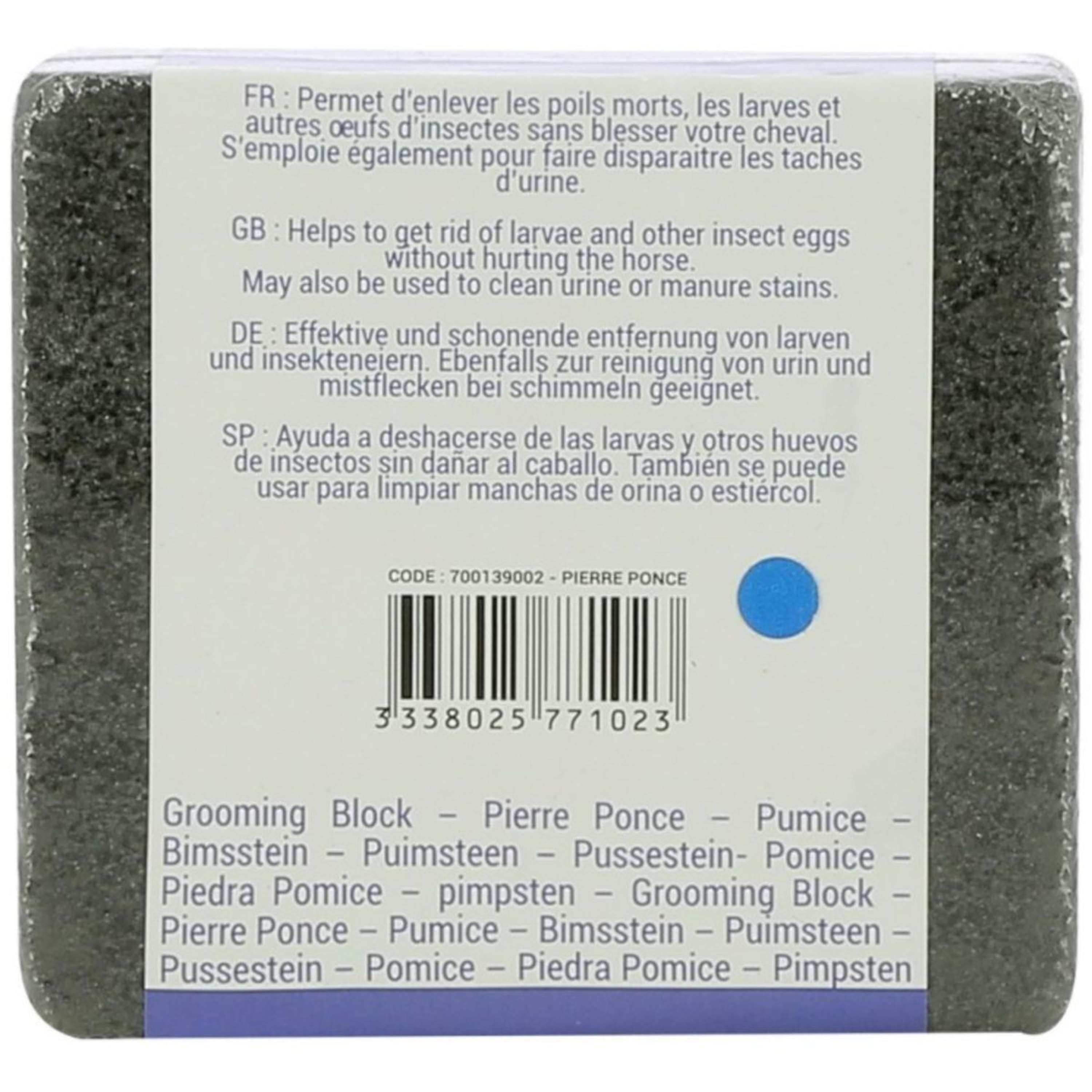 Esta piedra está hecha con materiales duraderos que aseguran un uso prolongado y eficaz. Su textura especial permite retirar los pelos sueltos sin dañar la piel de tu caballo, lo que la convierte en una opción ideal para un cuidado diario.