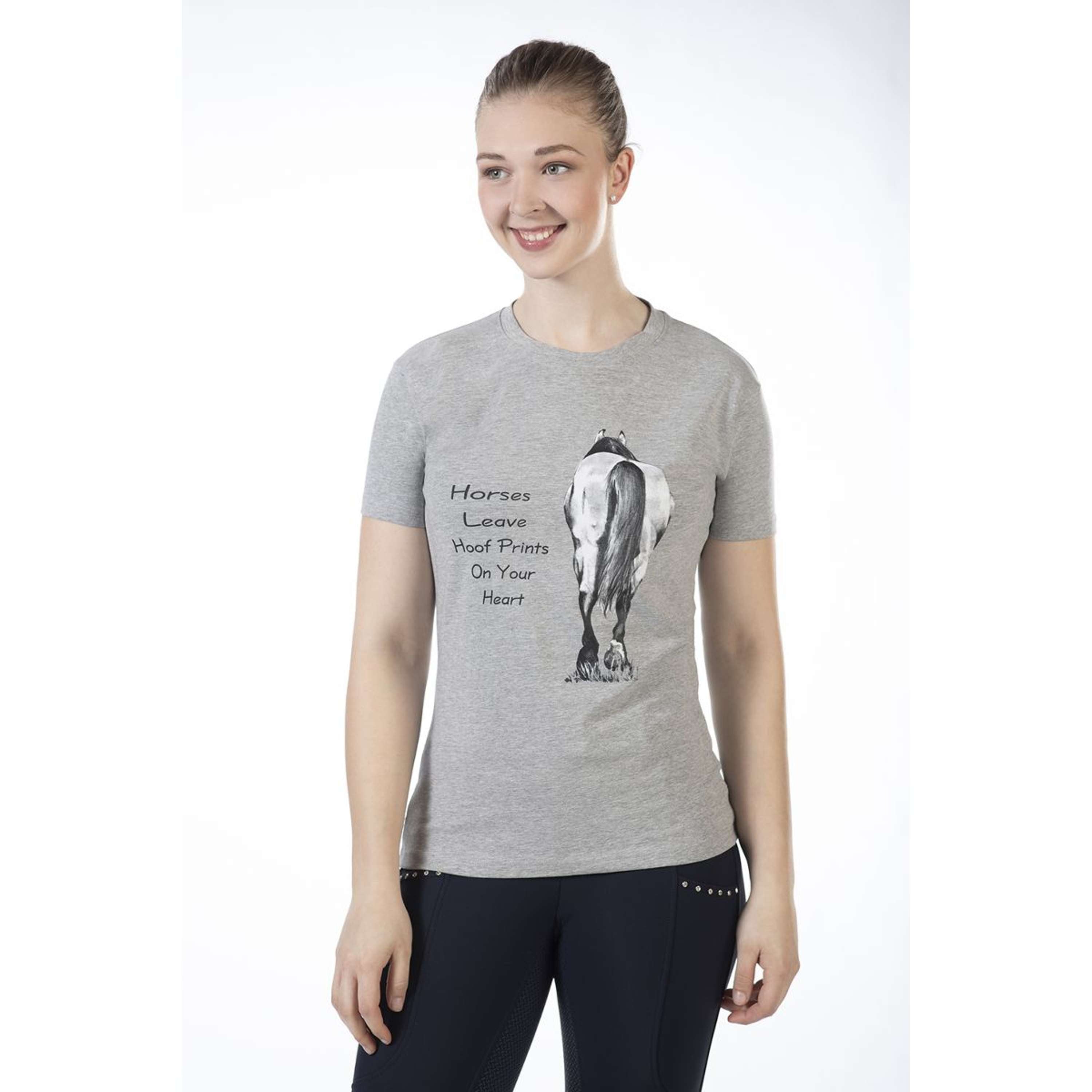 HKM Camiseta Horses leave Hoofprints Manga Corta Gris