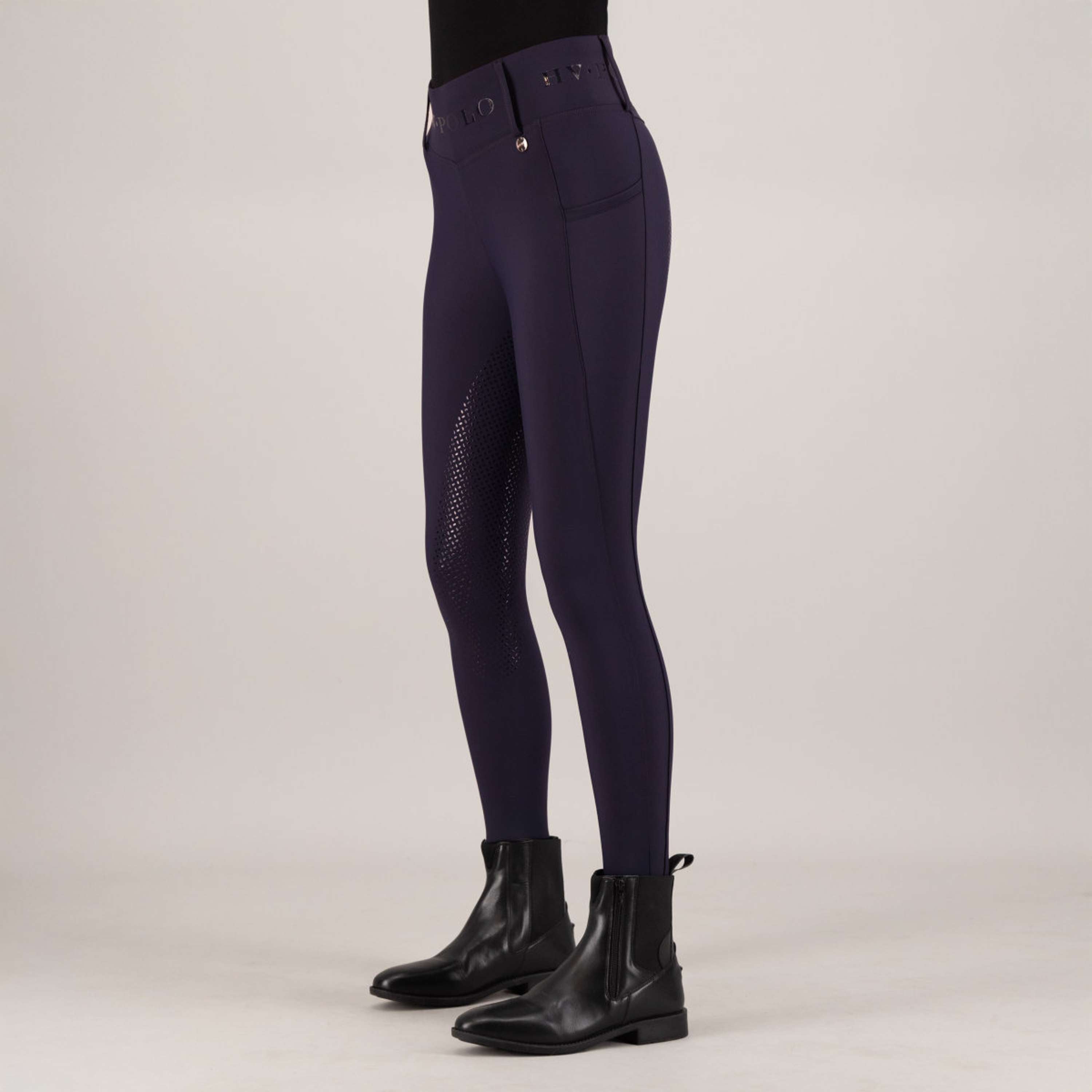 Leggings de montar HVP-Favorito FullGrip – Cómodo, Con Estilo y Práctico ¿Eres un jinete que no quiere comprometerse entre la máxima comodidad y un look chic en la silla? ¡Entonces las mallas FullGrip, favoritas de HVP, son justo lo que buscas! Estos leggings están diseñados para darte el ajuste perfecto y libertad de movimiento, ya sea que sepas una sesión de adiestramiento de doma o que salgas a una ruta tranquila al aire libre. Con la cintura alta y elástica, los leggings encajan perfectamente y te dan todo el soporte que necesitas. Detalles sutiles pero con estilo, como la moneda metálica en la parte delantera y el logo impreso de HV Polo en el centro de la cintura, dan a estas mallas de conducción un toque exclusivo. Y gracias a los prácticos bolsillos para el móvil en ambos lados, cuyo bolsillo derecho tiene un remache chulo, siempre tienes lo esencial a mano. ¡Opta por un look tan dinámico y elegante como tú! Cintura alta cómoda para un soporte óptimoEquipado con pasadores prácticos para tu cinturón favoritoCómodos para el móvil a ambos lados para guardar lo esencial de forma seguraEstampado elegante de monedas metálicas y polo HV para un aspecto premiumAsiento de agarre para mayor agarre y estabilidad en el sillín