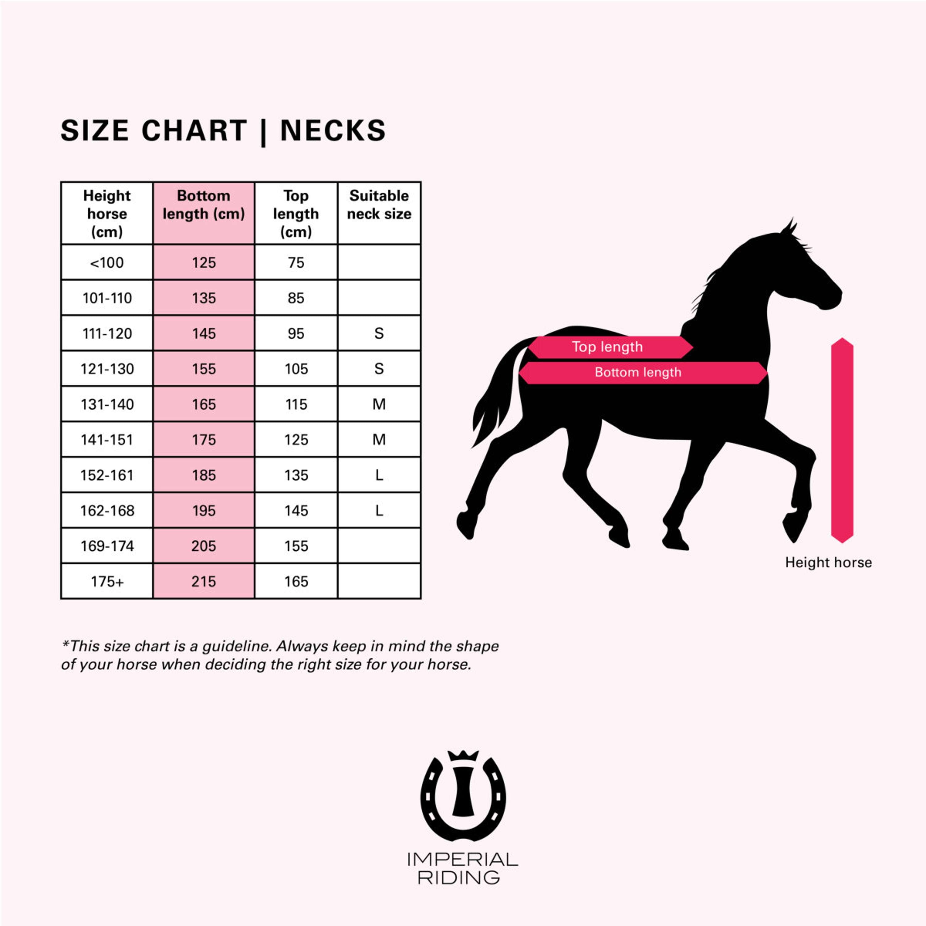 Esta parte del cuello está especialmente desarrollada como complemento a nuestra manta súper seca Rain & Fly. La parte del mástil ofrece protección en diferentes condiciones meteorológicas y puede cerrarse con un cierre doble de Velcro. En un chaparrón veraniego, tu caballo permanece seco gracias a la capa superior resistente al agua, que presenta el conocido estampado floral de Imperial Riding. Además, la malla ligera y transpirable proporciona protección contra las moscas.
