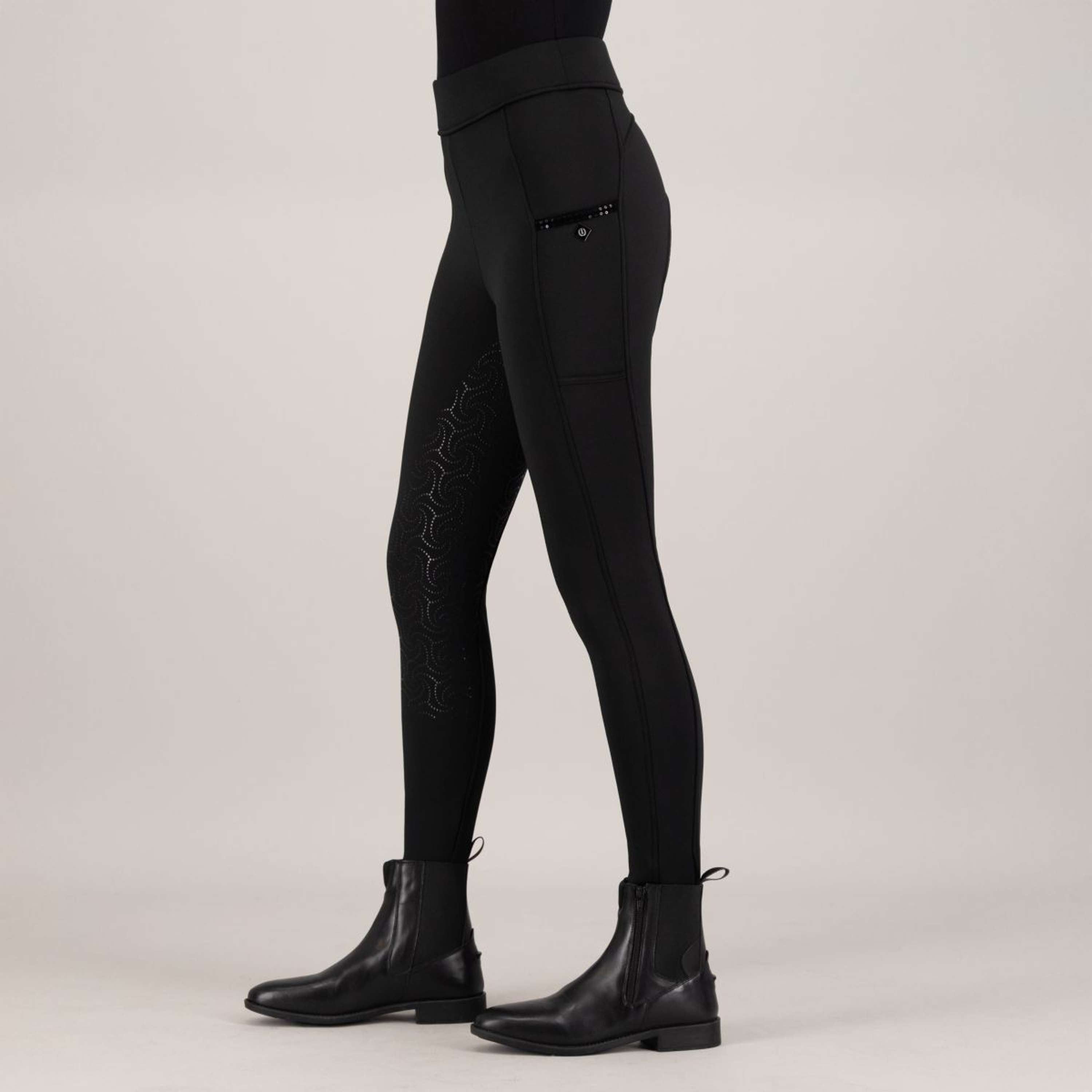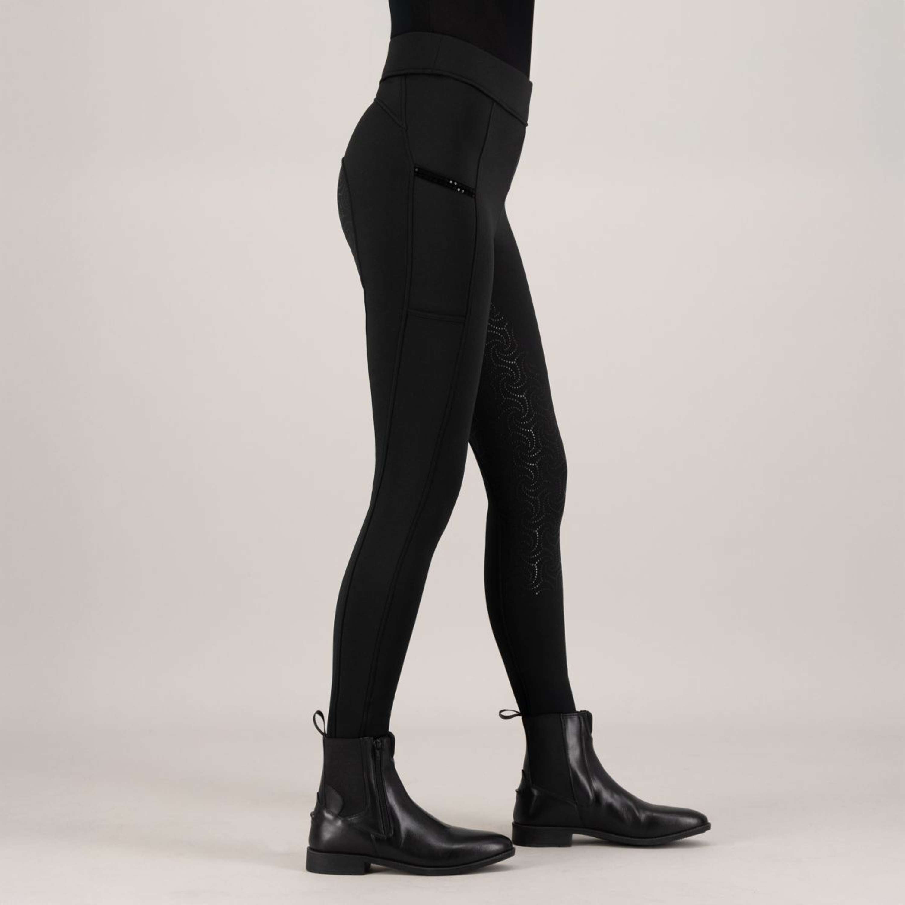 Leggings de montar IRH-Teddy FullGrip – Cálidos, elegantes y prácticos¿Quién dice que no puedes brillar en el establo en invierno? Con las mallas de montar IRH-Teddy FullGrip, puedes combinar sin esfuerzo la calidez con tu inconfundible sentido del estilo. Estas mallas de montar están especialmente diseñadas para el ciclista atrevido que busca un poco más de glamour, incluso durante los días más fríos. El interior suave y cepillado te mantiene maravillosamente caliente, mientras que el acabado suave proporciona una comodidad inigualable. Ya sea que te guste la doma, dar un salto o simplemente disfrutar de un paseo, estos leggings te harán brillar con cada movimiento. ¡Haz una declaración y muestra tu personalidad, porque Imperial Riding tiene que ver con la diversión, la moda y la funcionalidad! Deliciosamente cálido gracias al interior suave y cepilladoAgarre total de silicona de moda para una estabilidad óptima en el sillínPrácticos bolsillos para el teléfono con glamurosa banda de terciopelo y lentejuelasCintura alta con estampado IMPERIAL RIDING a juego para un ajuste favorecedorMáxima comodidad gracias al tejido suave y las costuras elásticas para una total libertad de movimientos.