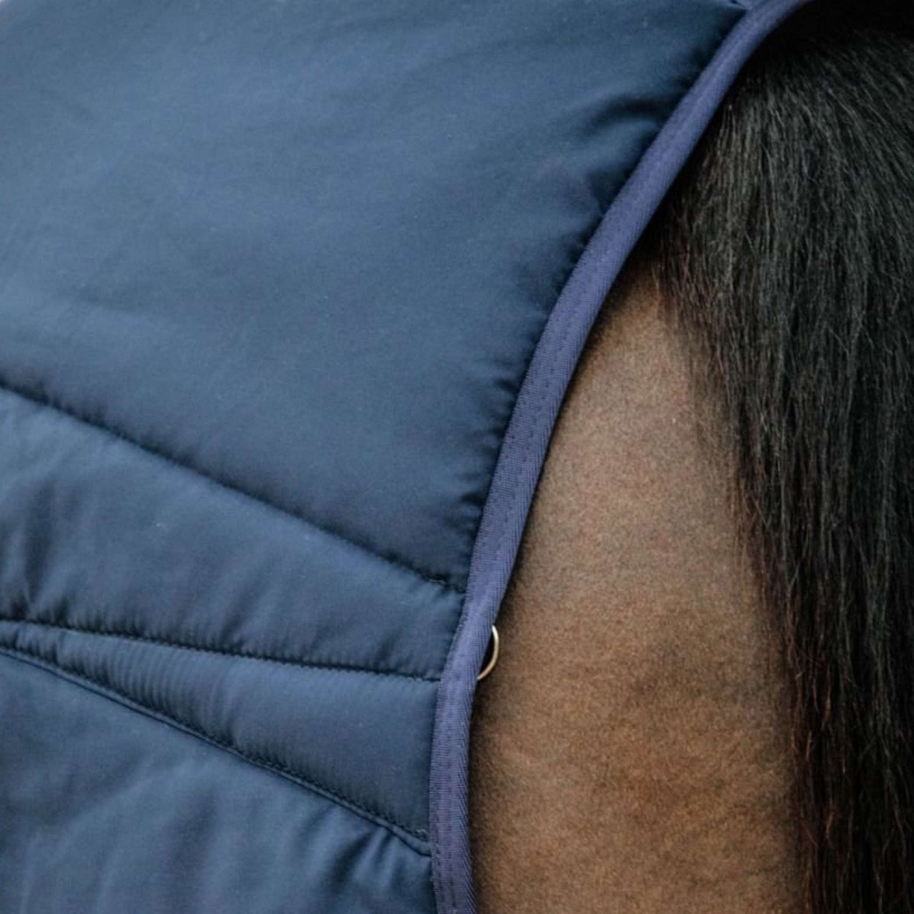 Con sus 300 gramos de relleno, esta bajoalfombra ofrece una protección ligera pero cálida para tu caballo. El tejido es suave y agradable, perfecto para evitar rozaduras y mantener la piel en óptimas condiciones.