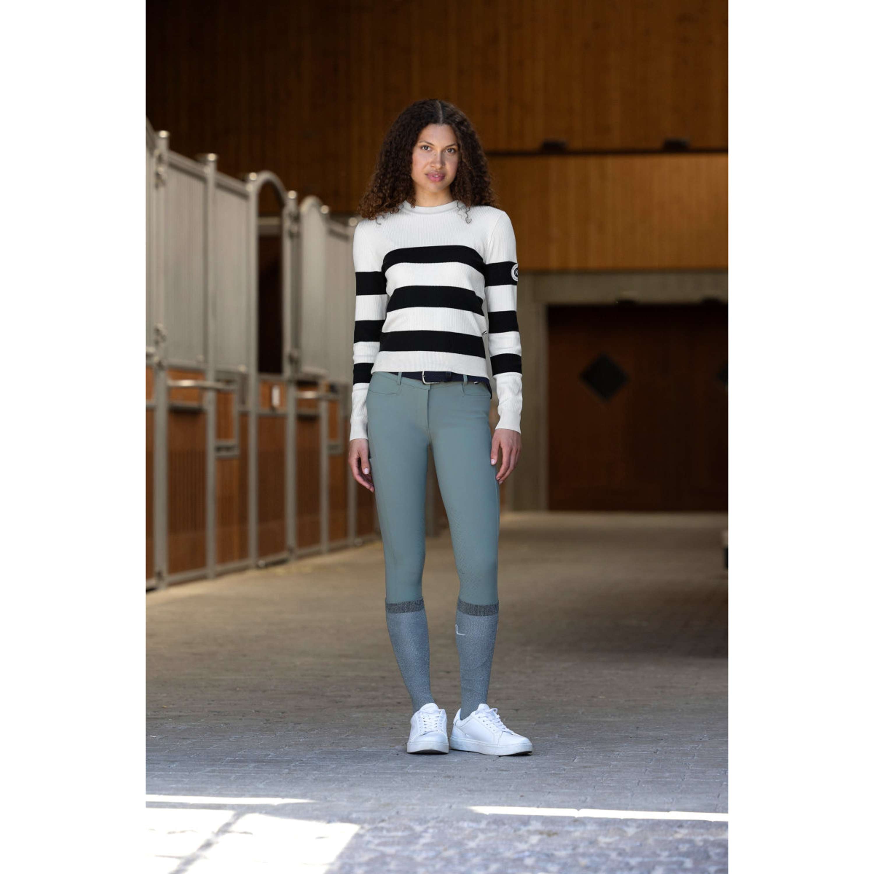 Estos calcetines hasta la rodilla ofrecen el ajuste perfecto bajo las botas de montar, asegurando una sensación de seguridad y reduciendo la fricción. La tela Coolmax, que absorbe la humedad, y el tratamiento Polygiene StayFresh™, trabajan juntos para combatir el sudor y los olores, convirtiéndolos en una opción fiable para los ciclistas activos. Con un delicado acabado de purpurina, combinan practicidad y estilo para un aspecto pulido dentro y fuera de la arena.