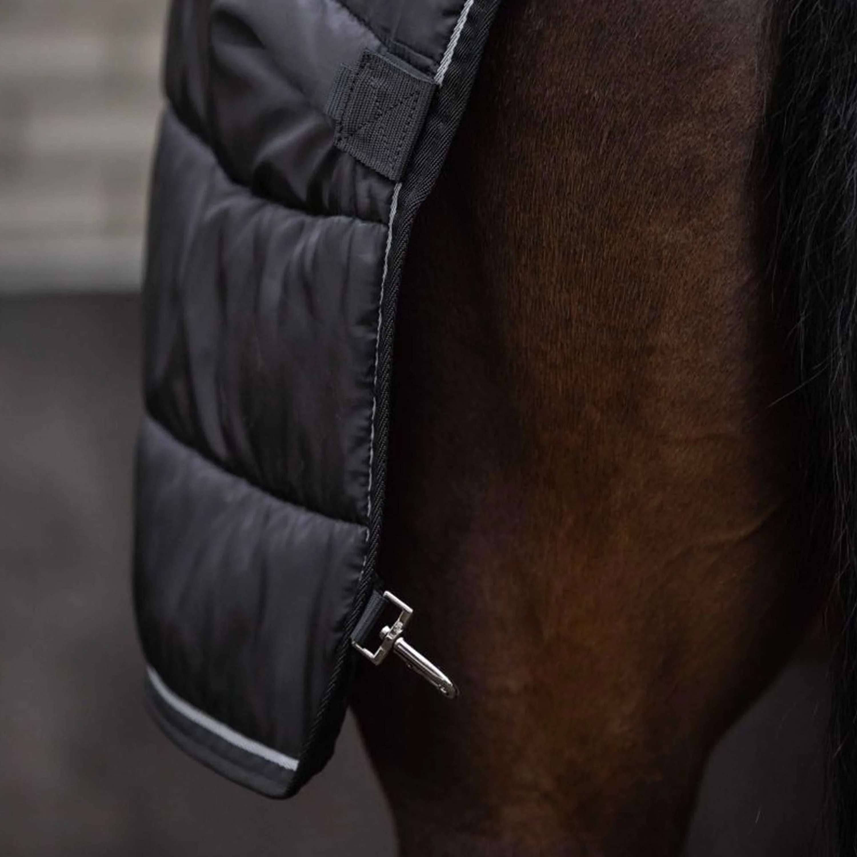 Fabricada con materiales resistentes, esta bajoalfombra asegura durabilidad y una excelente retención de calor. Tu caballo estará cómodo y protegido por muchos años.