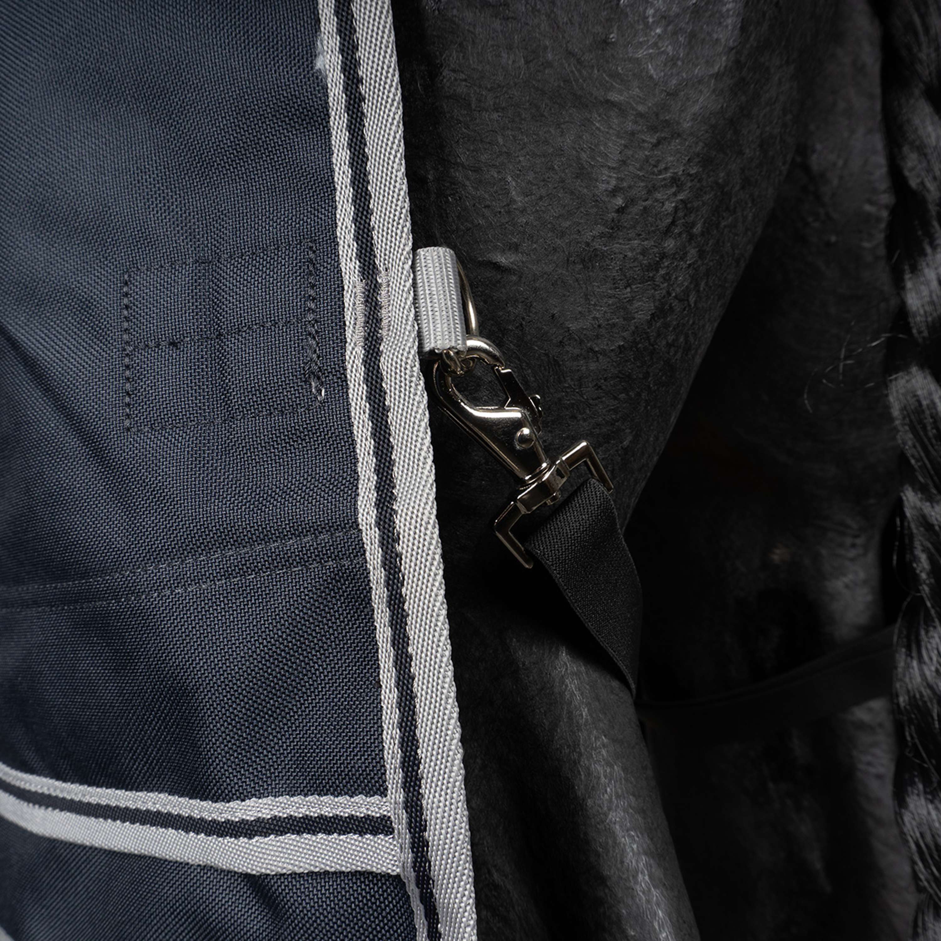 Los 200 gramos de relleno proporcionan la cantidad justa de aislamiento para días frescos, manteniendo a tu caballo cómodo sin añadir peso innecesario. Es como si llevase un abrigo ligero, pero con toda la protección que necesita.