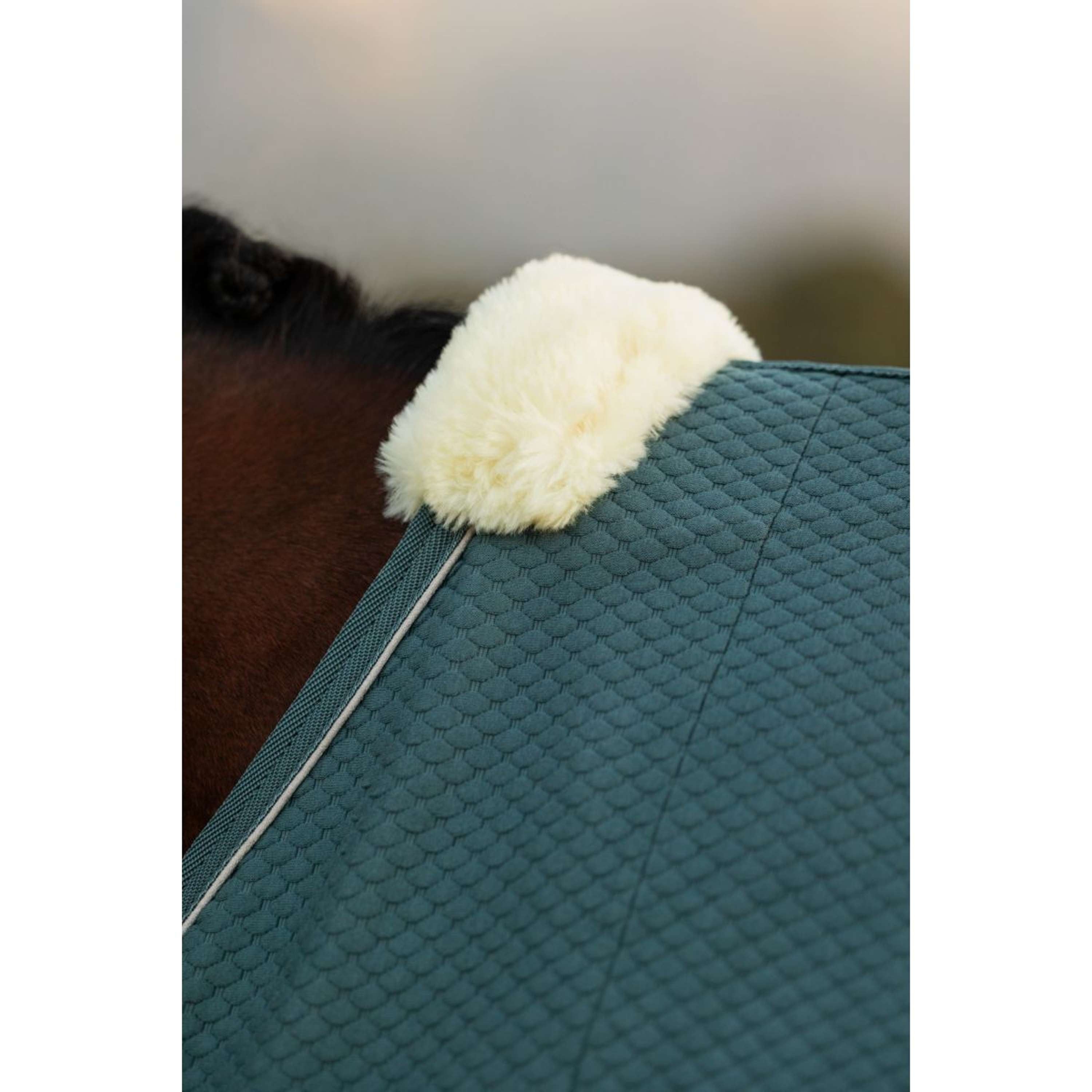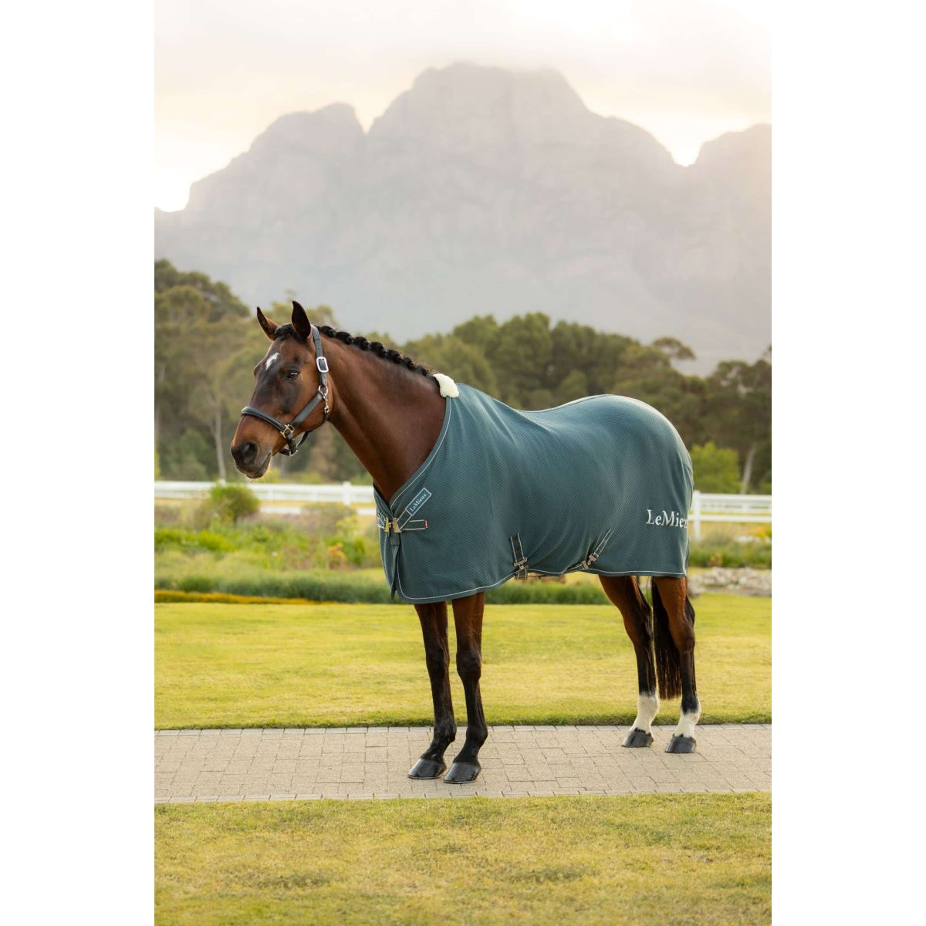 La lujosa hielera de bambú Kudos destaca por su elegante diseño hexagonal y ribete de gamuza en contraste. Ideal para transportarla, usarla en el establo o refrescarse después del entrenamiento, es una manta inteligente que aprovecha la experiencia técnica de LeMieux.