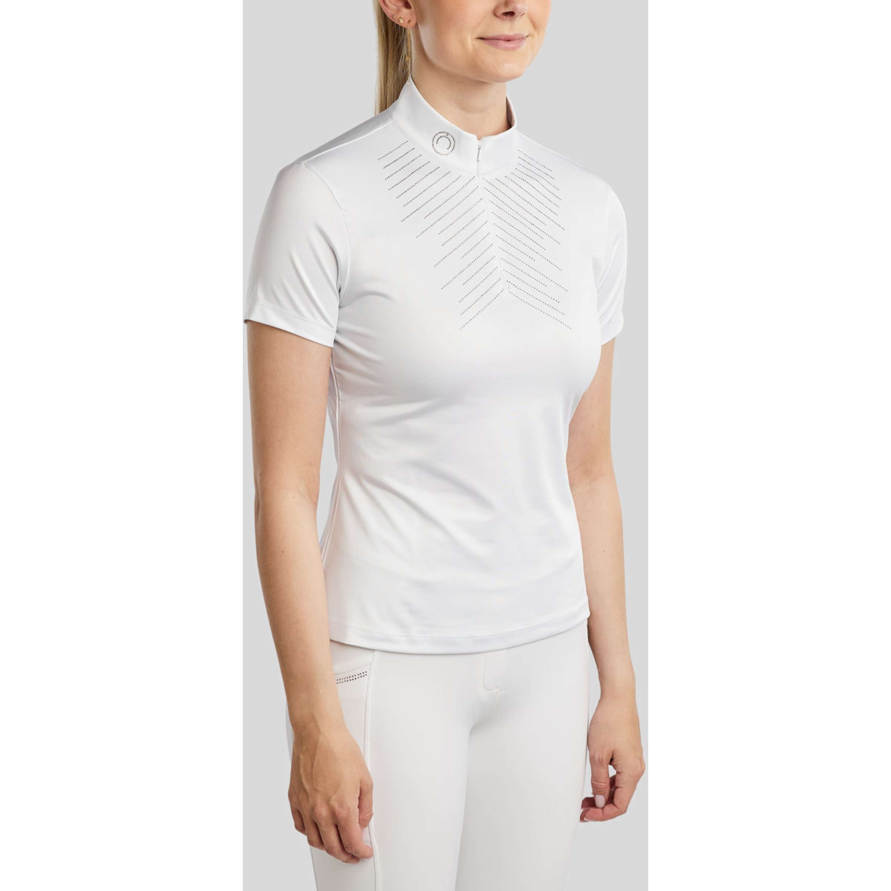 Añade un toque radiante y elegante a tu armario de desfiles con nuestra camiseta MoSparkle Show Shirt. Esta camisa femenina y estilosa combina una expresión clásica y limpia con detalles lujosos en cristal y gran comodidad. Es perfecto para ciclistas que buscan un aspecto exclusivo y llamativo.