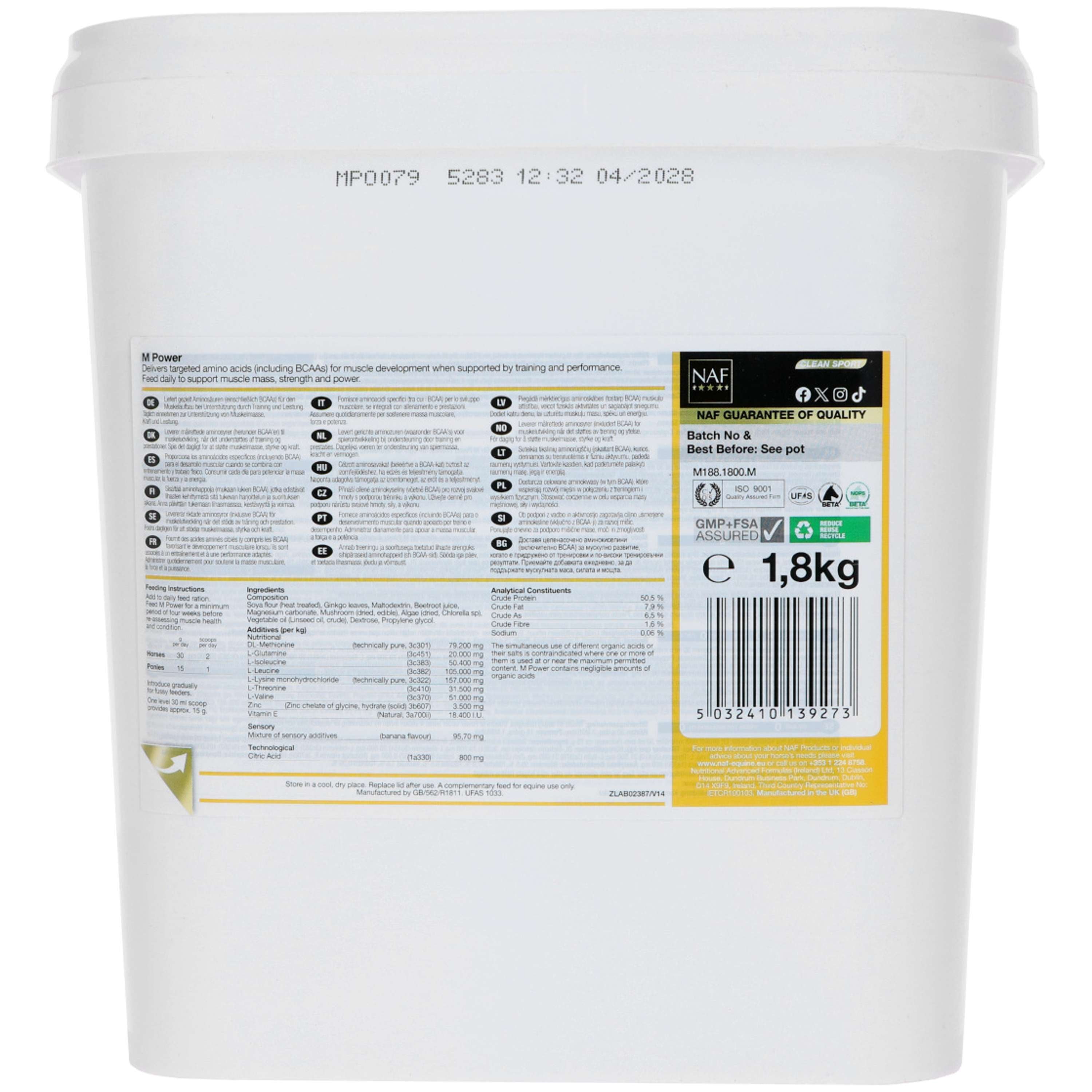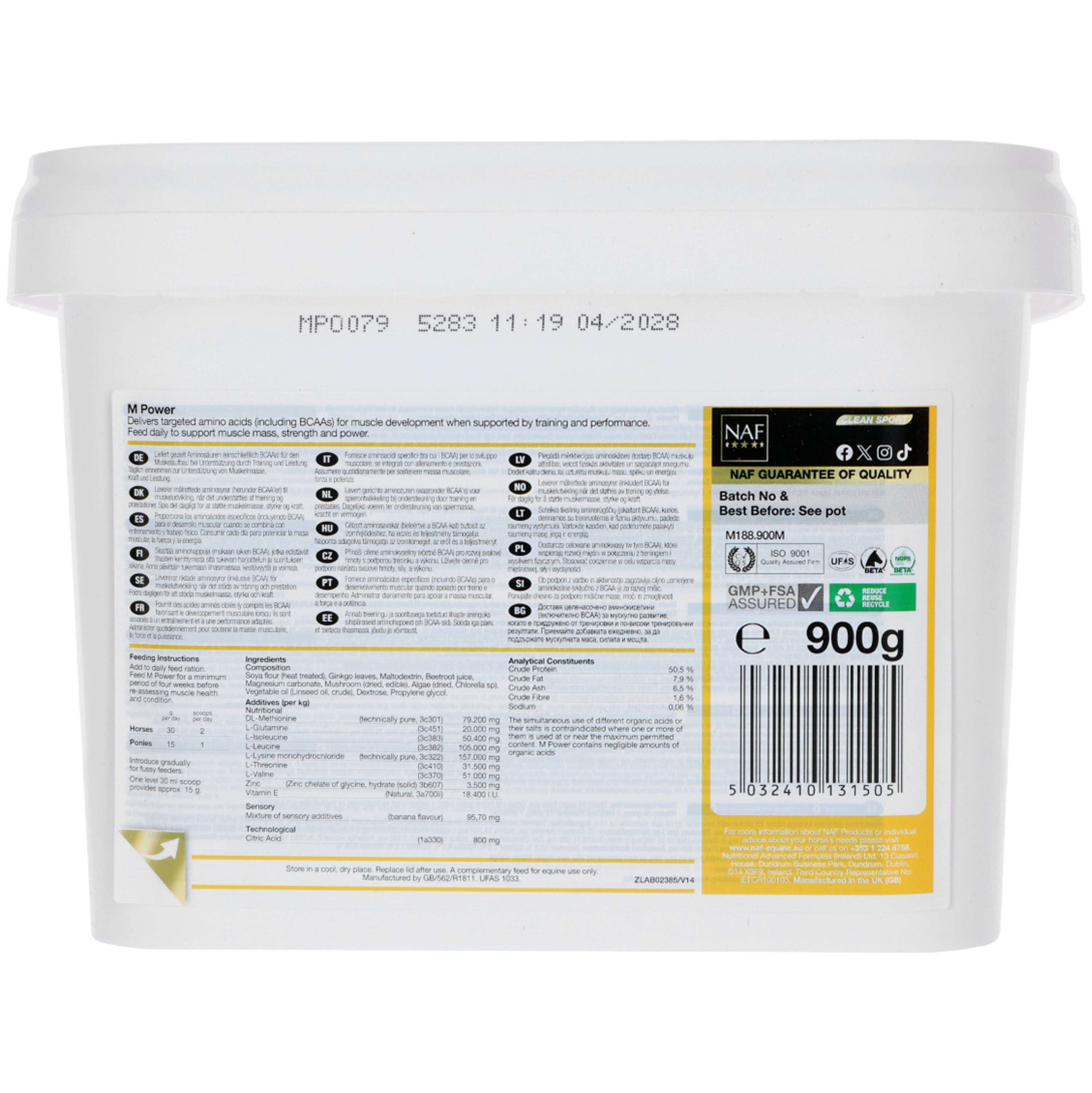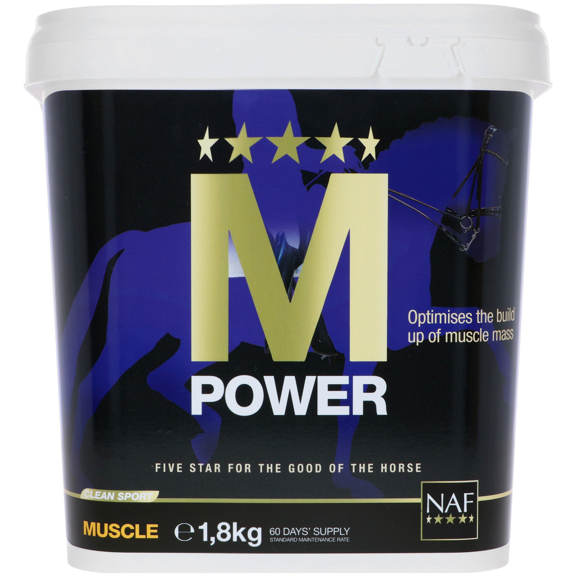 ¿Tu caballo necesita un empujón para mantener sus músculos en forma? El suplemento NAF M Power está diseñado para cuidar a tu caballo tras días intensos, ayudándolo a mantener la fuerza muscular y recuperar más rápido. Ideal para el entrenamiento y los retos más exigentes.