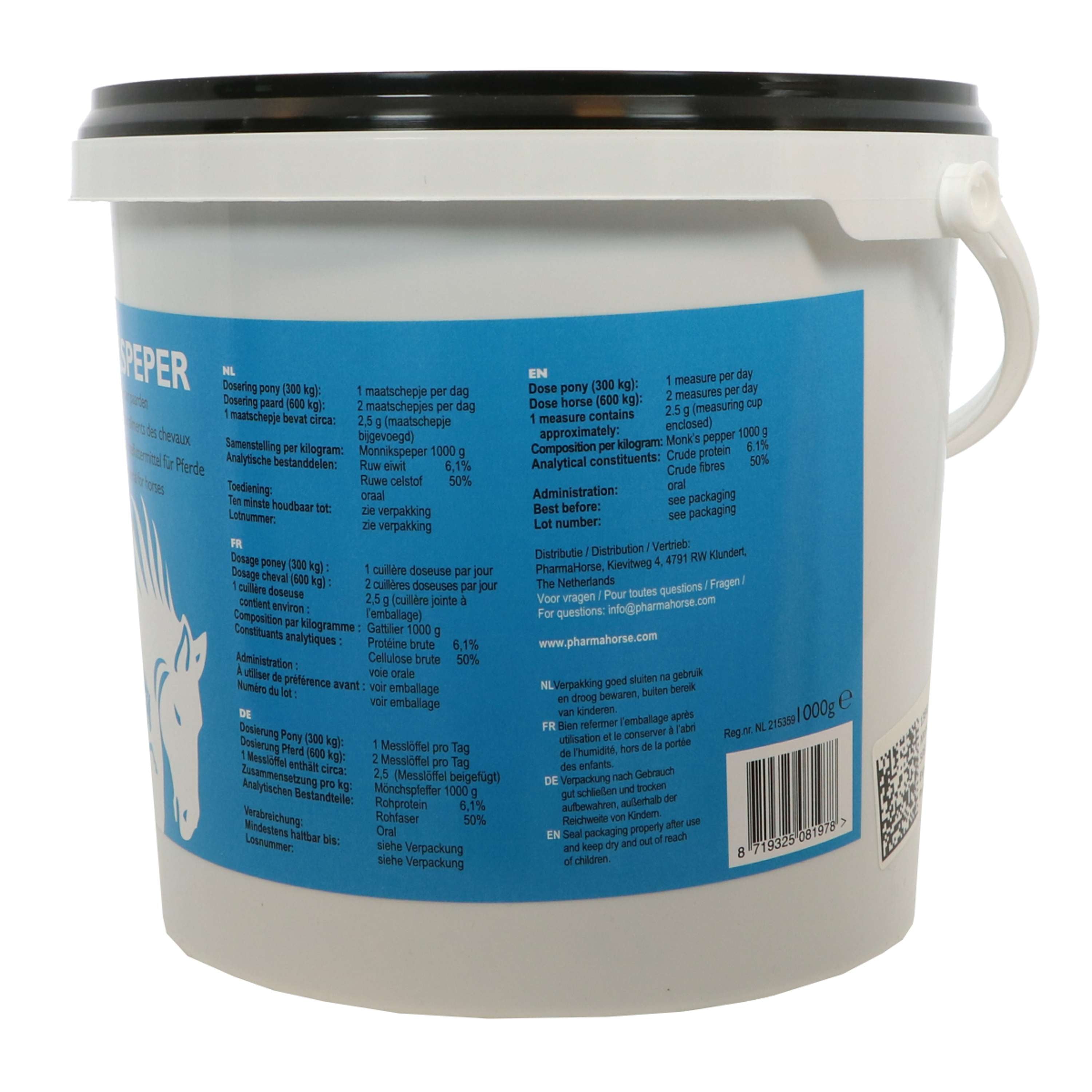 Asegura el bienestar de tu caballo con PharmaHorse Sauzgatillo. Esta práctica hierba crece de forma natural en zonas mediterráneas y también se conoce como árbol casto. El nombre latino es Vitex agnus-castus. Esta hierba se presenta en forma de bayas (tipo granos de pimienta) y es 100% pura, de calidad grado humano. Perfecta para la salud general de tu caballo.