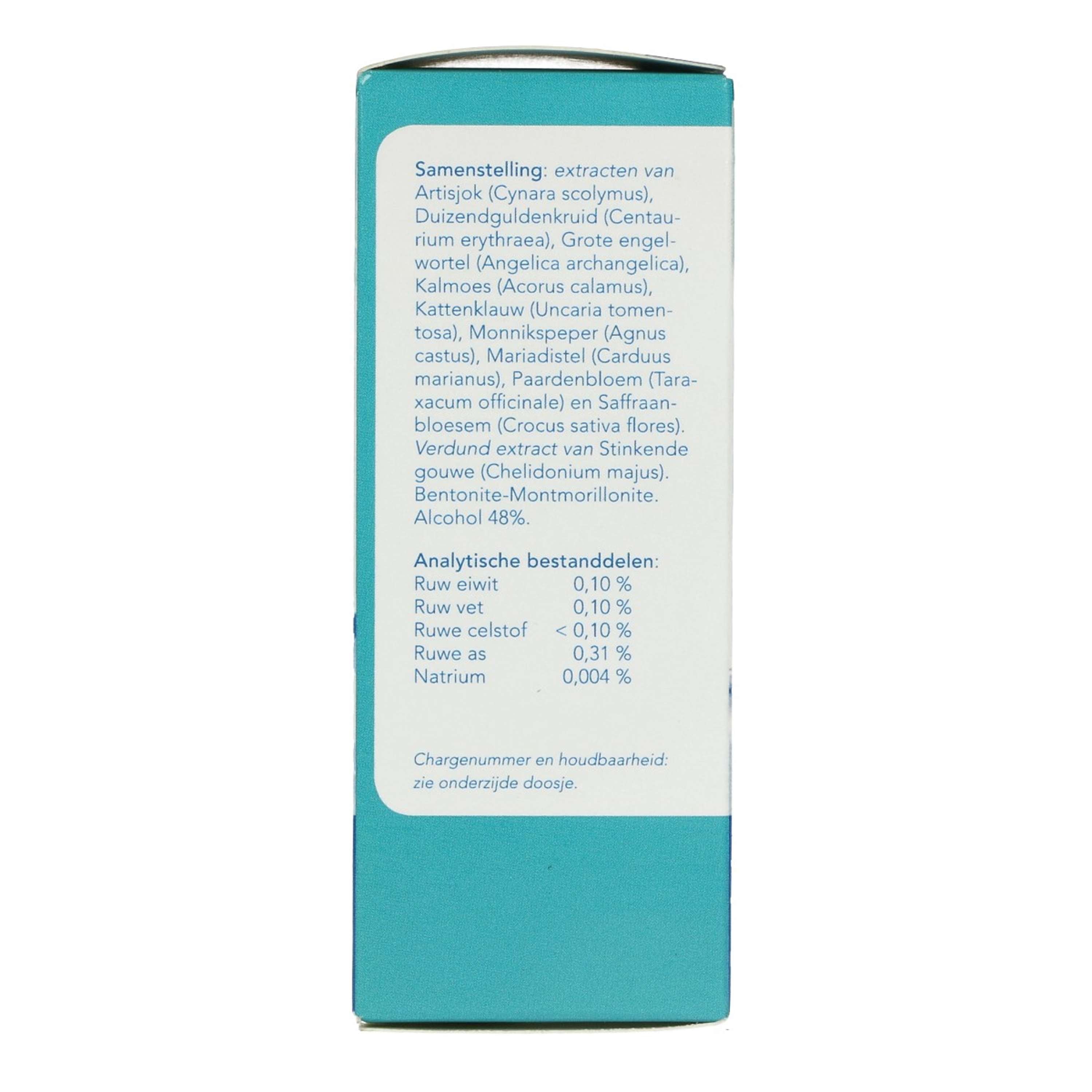 Aqua, Agnus castus, Cynara scolymus, Carduu, marianu, Taraxacum officinale, Centaurium erythraea, Uncaria tomentosa, Angelica archangelica, Acorus calamus, Crocus sativus.