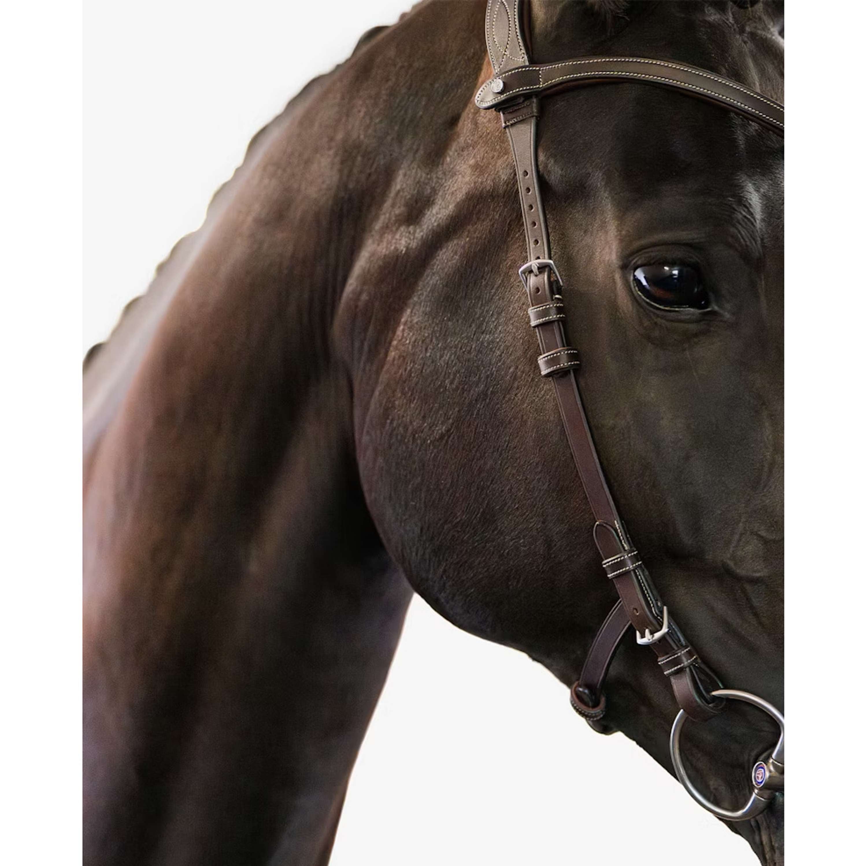 Fabricada con materiales de alta calidad, esta brida está pensada para resistir el uso diario manteniendo una apariencia impecable. Es robusta, duradera y suave al tacto, perfecta para cuidar la piel de tu caballo.
