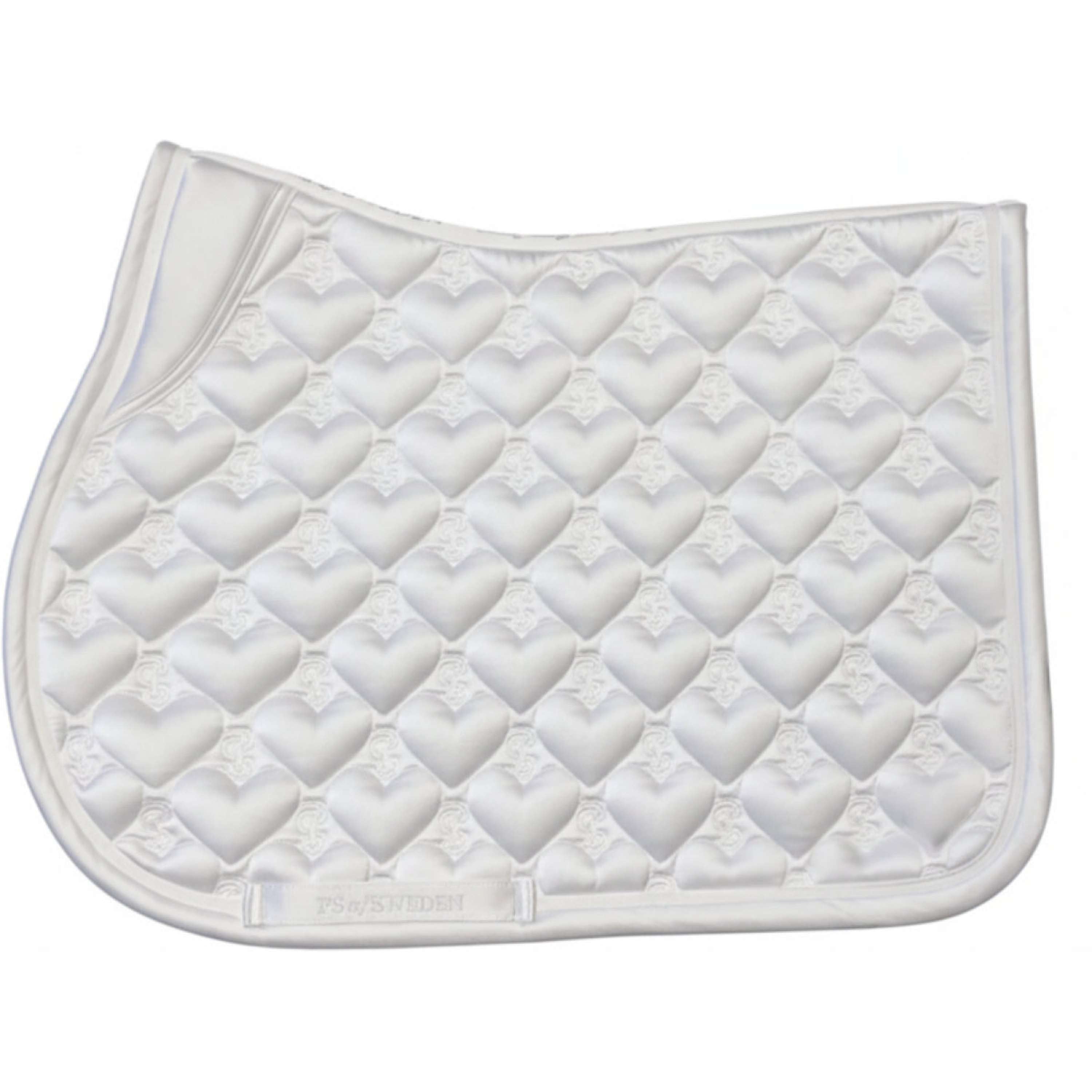 Una nueva almohadilla de silla de montar acolchada en forma de corazón y una cita de amor personal en dorado a lo largo del lomo.