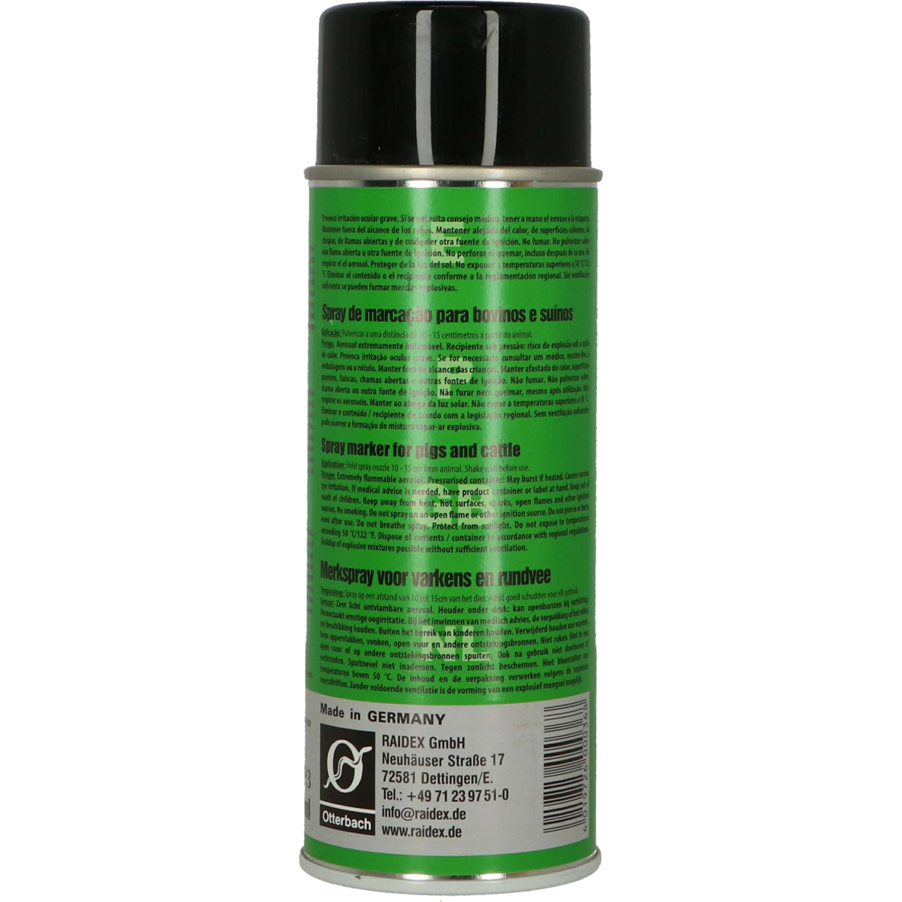 ¡Tu ganado lo tendrá claro! El spray Raidex es la solución perfecta para la marcación temporal de animales, garantizando que cada uno esté identificado de manera sencilla mientras tú te dedicas a lo que realmente importa. Este spray no solo cumple su función, sino que lo hace de forma eficiente y práctica.