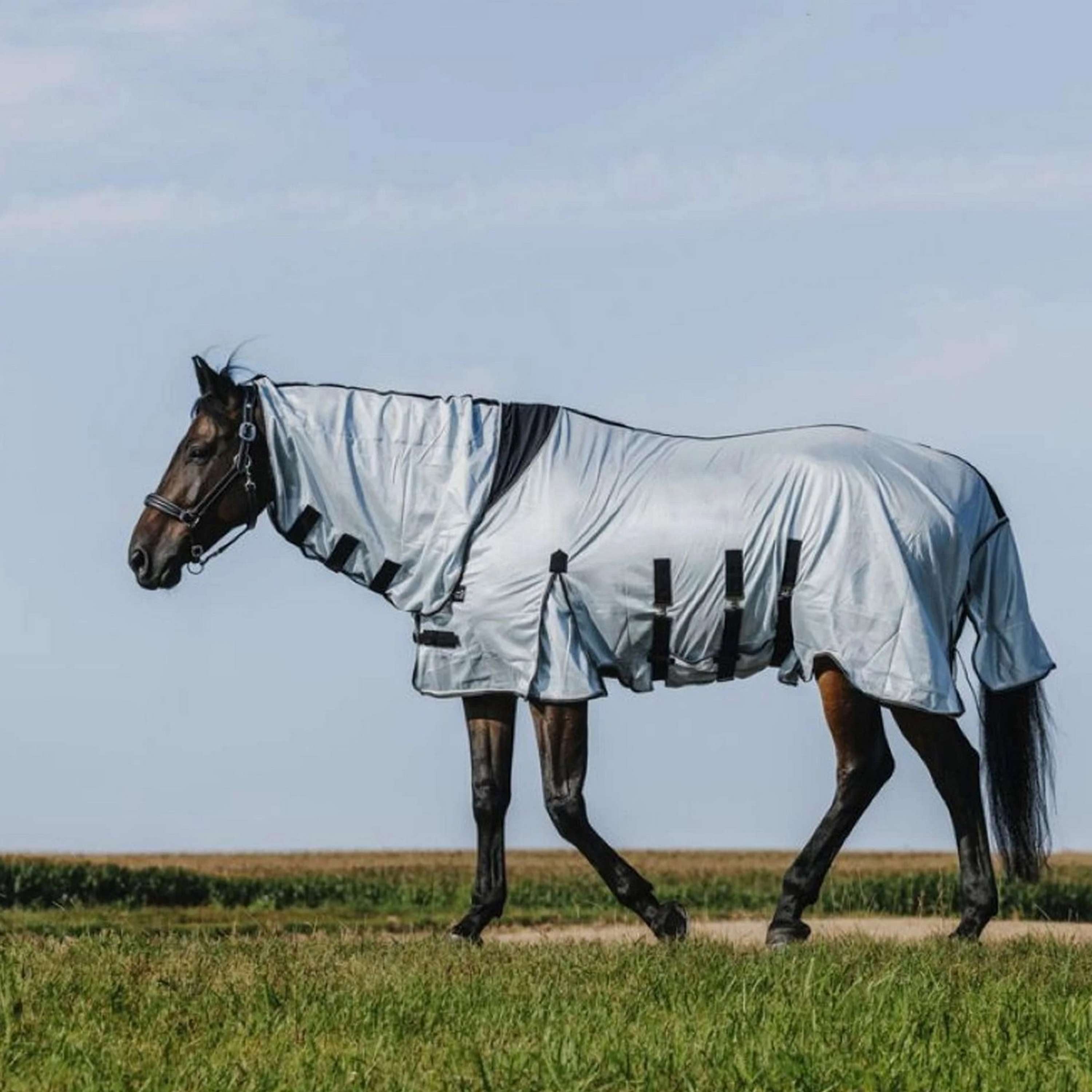 Gracias a su cubierta de malla transpirable, esta manta no solo mantiene alejados a los desagradables mosquitos y tábanos, sino que también permite que el aire circule. Tu caballo estará fresco y protegido sin sentir calor excesivo.
