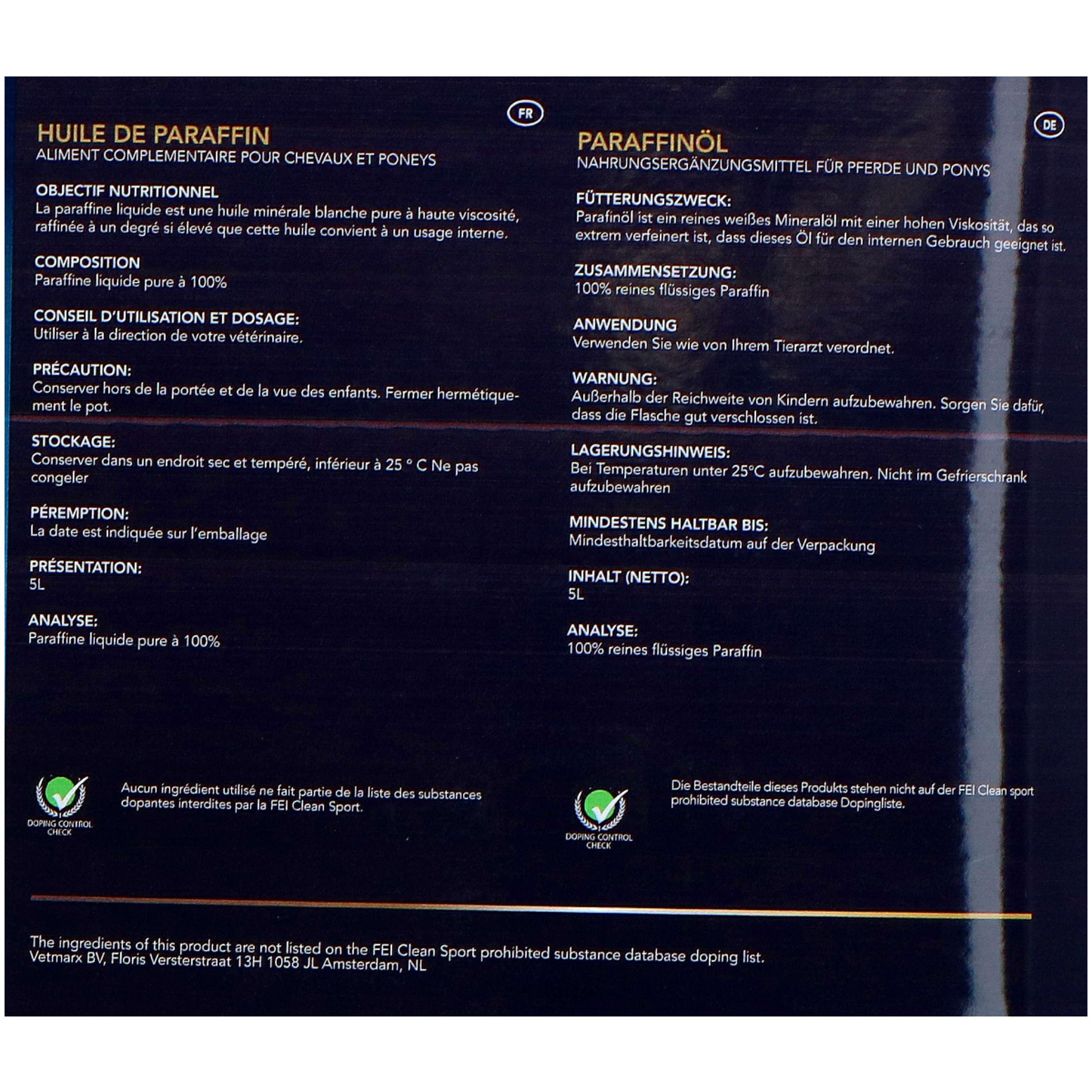 Un aceite mineral blanco y puro, de alta viscosidad y tan refinado que es apto para uso interno. El aceite de parafina apoya el funcionamiento del sistema digestivo, especialmente de los intestinos, y ayuda en casos de estreñimiento.
