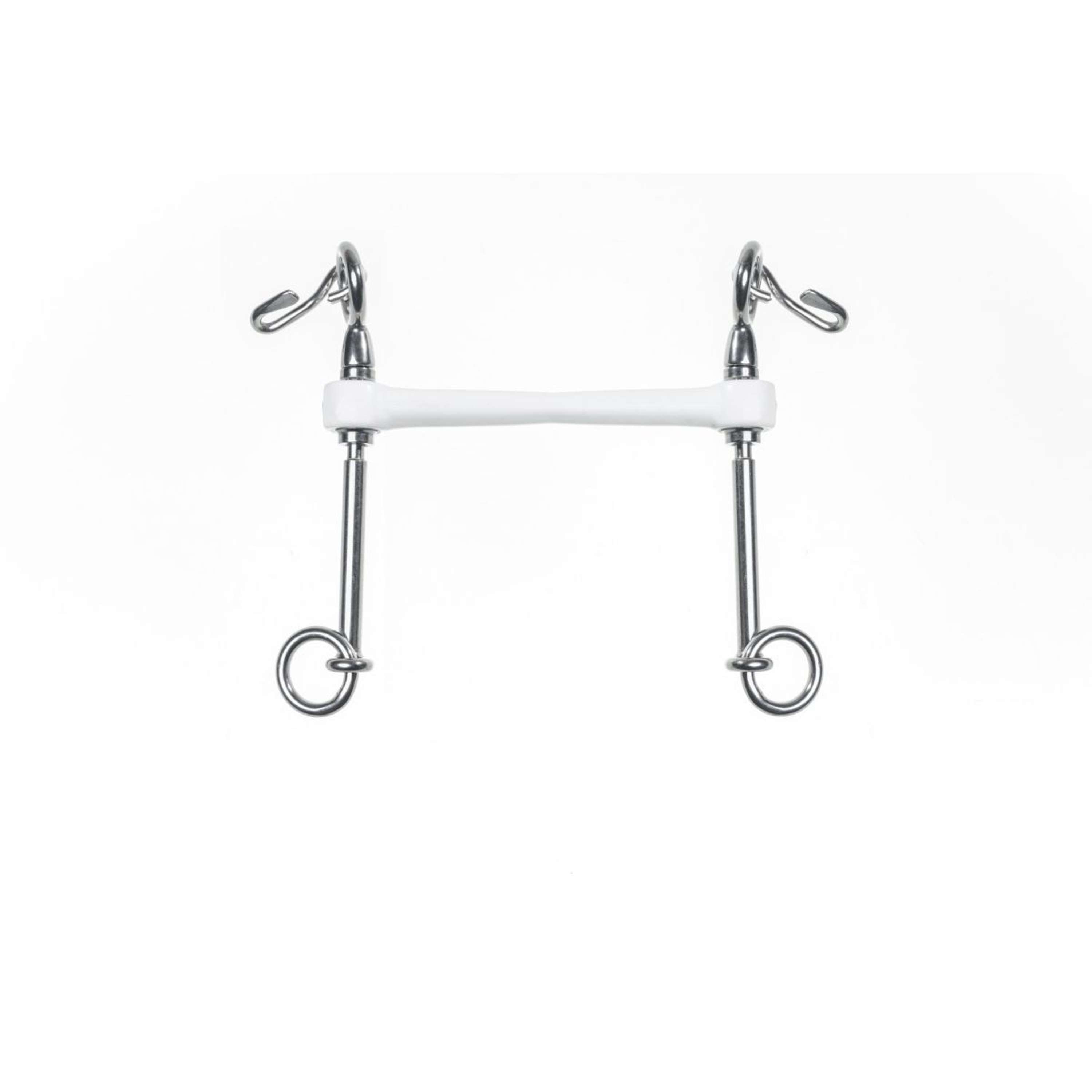 Este bocado está fabricado con un material sintético flexible que es ideal para caballos sensibles. Su diseño suave ayuda a que tu caballo se sienta relajado mientras lo utiliza, sin molestias ni incomodidades.