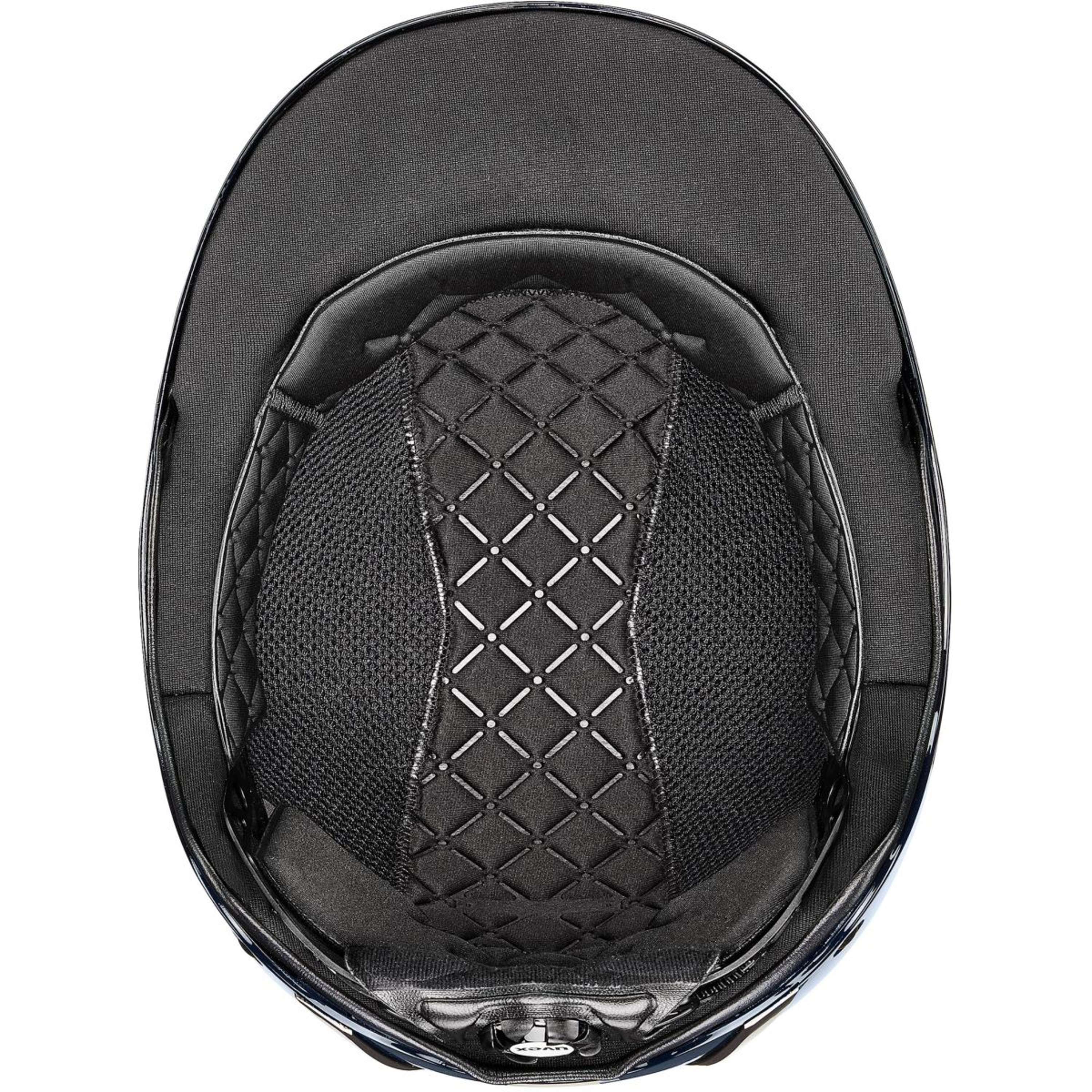 Alto rendimiento. Estiloso. Cómodo. La seguridad de alta tecnología se une a la elegancia funcional en el uvex exxeed blaze. Con un acabado brillante de laca de piano, una parte superior glamurosa y un marco cromado, para una actuación radiante en la pista. Cómodo y protector para una monta más segura. La construcción hardshell de este casco de equitación, compuesta por una resistente carcasa exterior de plástico y un ligero núcleo de EPS, ofrece una resistencia a los impactos extremadamente alta. El sistema uvex 3D IAS con divisores de correas de ajuste rápido garantiza un ajuste personalizado en la cabeza. Este casco también destaca por su comodidad – gracias a las amplias ventilaciones que crean un clima más fresco y a las cubiertas de las correas de cuero sintético premium, suaves al contacto con la piel. La hebilla uvex monomatic puede manejarse con una sola mano, incluso con guantes. uvex exxeed blaze – una pieza con personalidad.