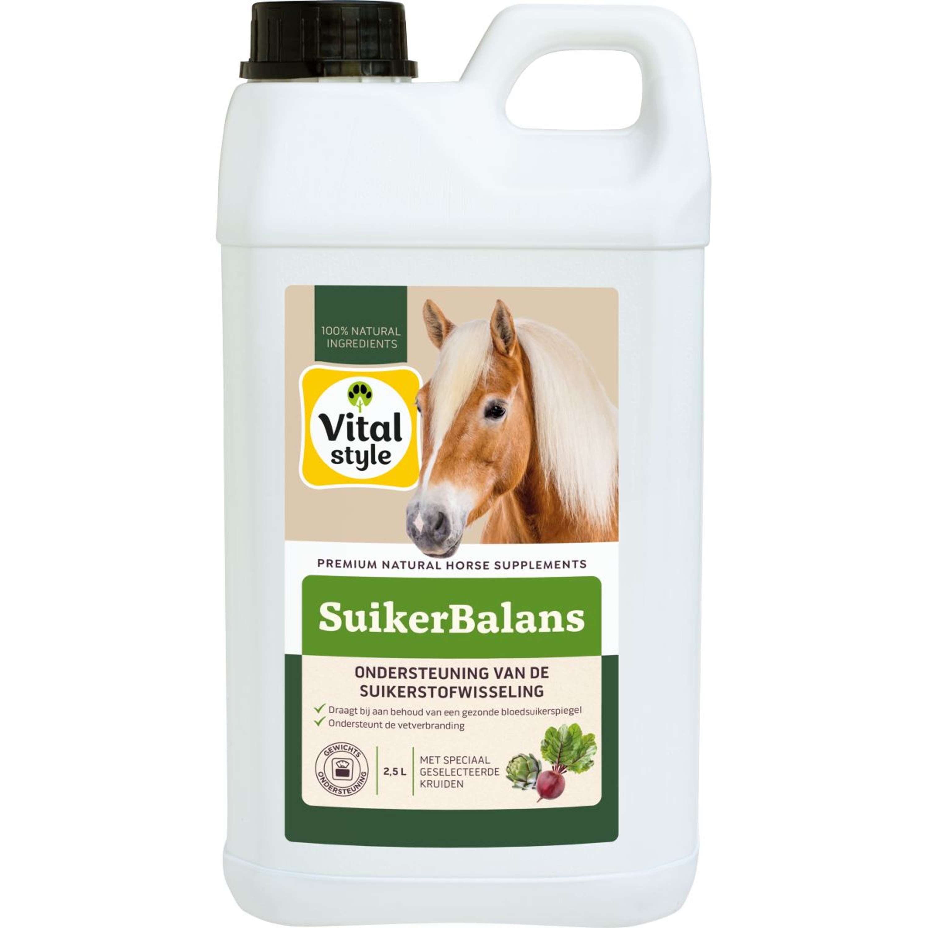 Vitalstyle Sugar Balance está especialmente desarrollado para apoyar el metabolismo del azúcar en caballos y ponis. Las fluctuaciones en los niveles de azúcar en el pasto, por ejemplo en primavera, pueden ser un desafío para el cuerpo del caballo. Un nivel normal de azúcar en sangre es esencial para mantener un peso corporal saludable, una buena circulación sanguínea en el casco y una función muscular saludable. Sugar Balance contribuye a mantener un nivel saludable de azúcar en sangre, esencial para pastos con alto contenido de fructanos.