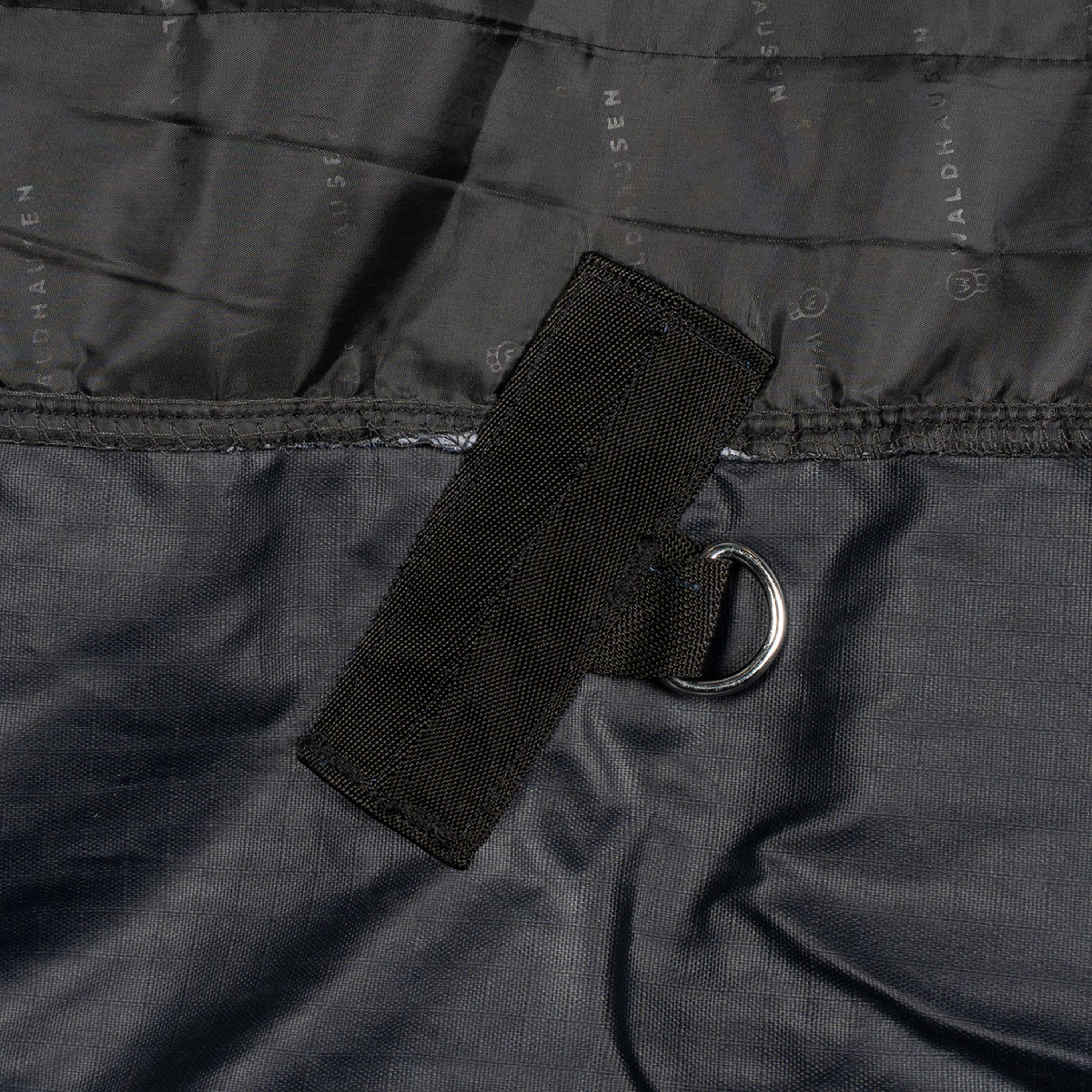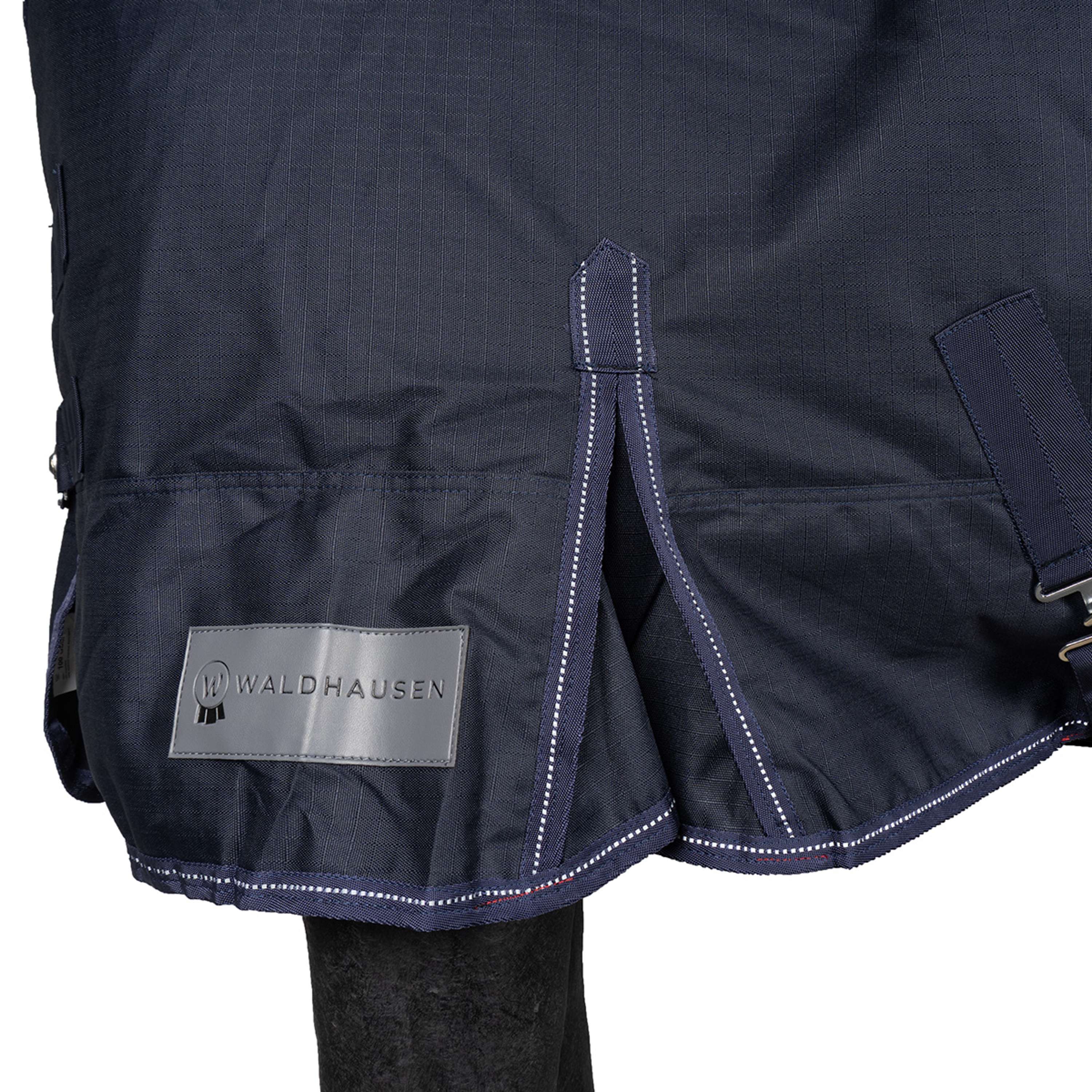 Con su relleno de 50 gramos, esta alfombra proporciona un equilibrio perfecto: lo suficientemente ligera como para no agobiar, pero capaz de mantener a tu caballo cálido y seco incluso cuando el clima no coopera. Además, su material exterior resistente al agua actúa como un escudo contra la lluvia.