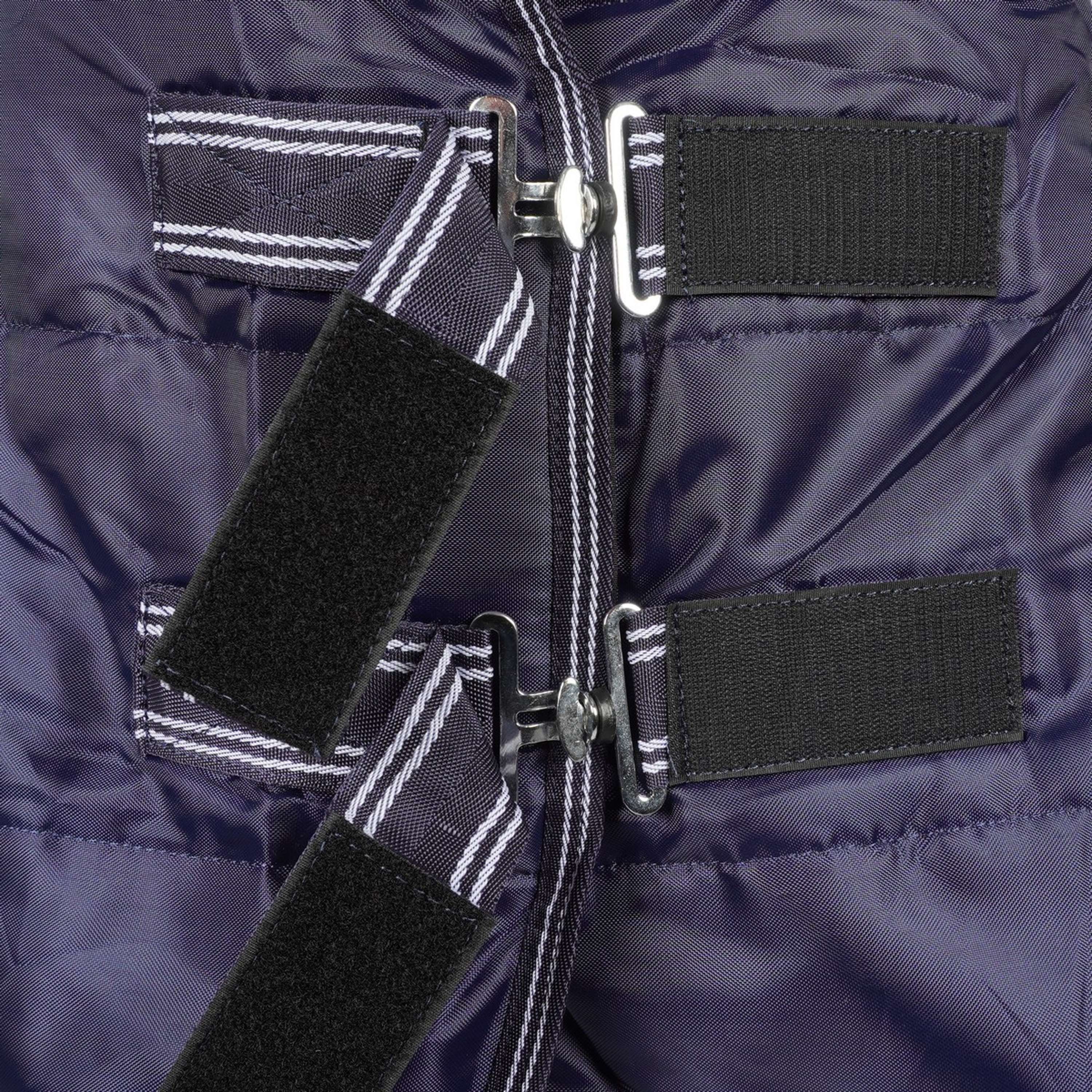 Con un relleno de 100 gramos, esta manta es ideal para esos días en los que necesitas algo ligero que mantenga el calor necesario sin agobiar. Perfecta para usar en el establo, cumple con su trabajo sin dramas y con mucho estilo.