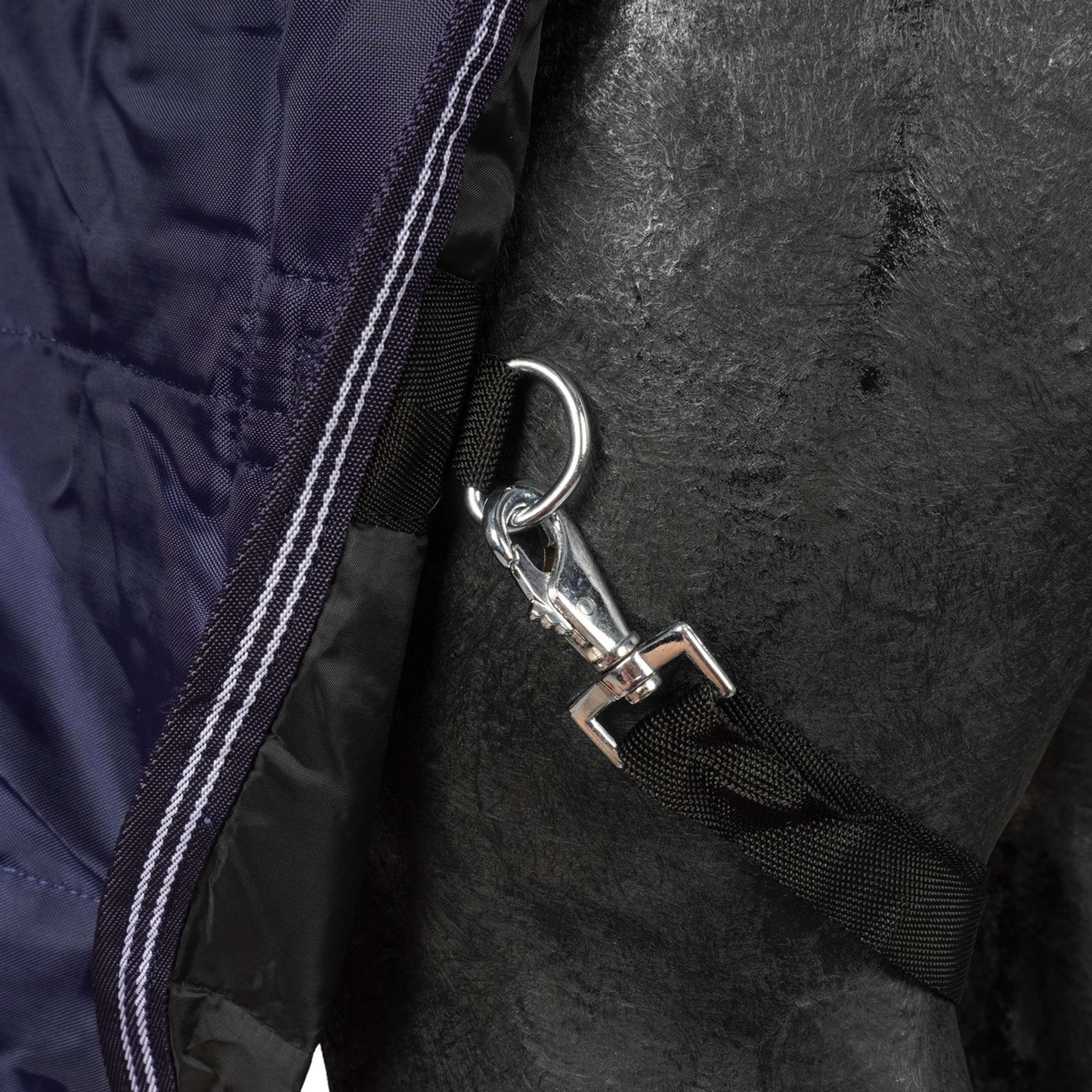 Gracias a su corte ergonómico y cintas ajustables, esta manta se adapta perfectamente al cuerpo de tu caballo. Ni demasiado suelta ni demasiado ajustada, es fácil de poner y se queda en su sitio sin que tu caballo se sienta incómodo.