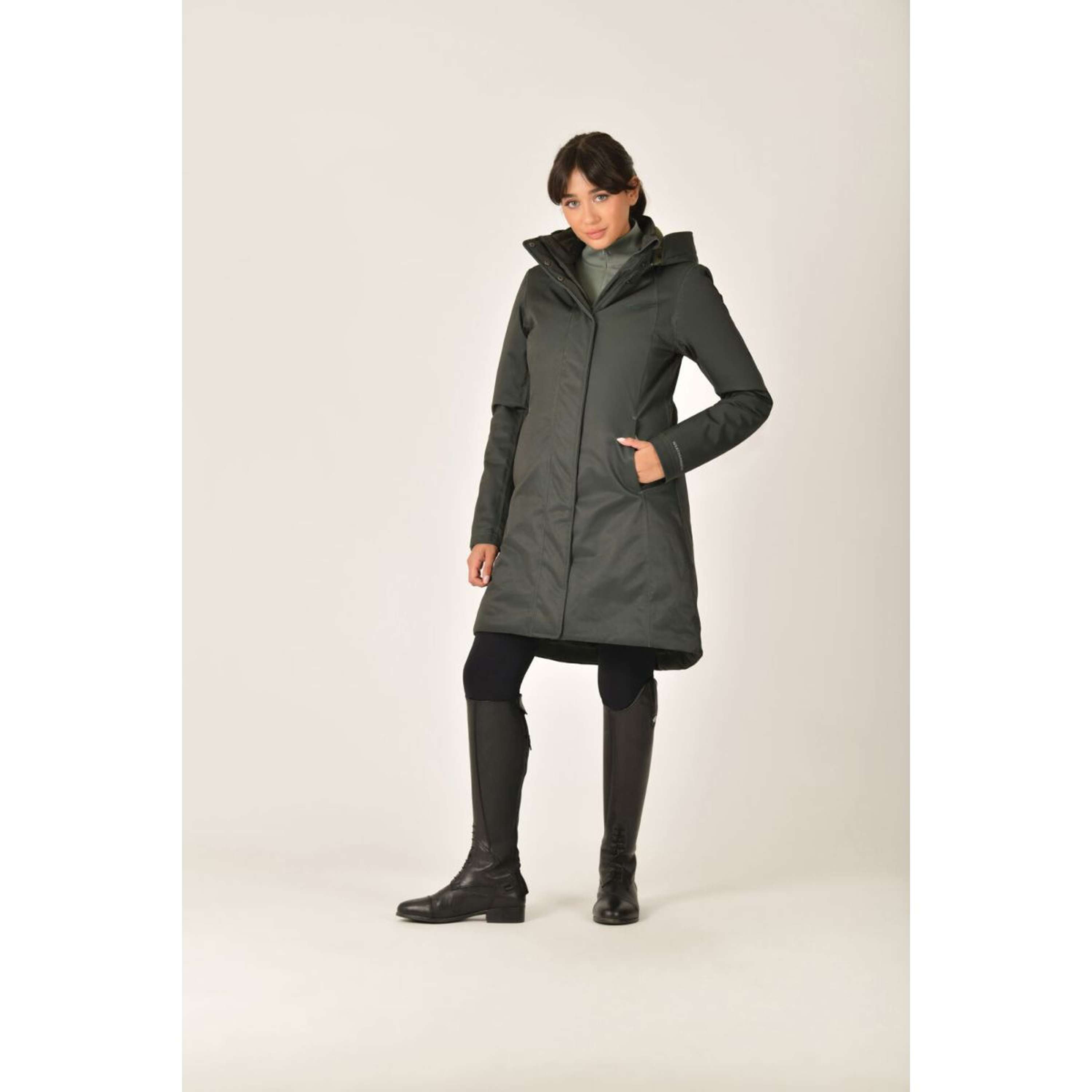 La chaqueta ecuestre larga impermeable multiusos WeatherBeeta está diseñada para mantener a los jinetes cómodos, secos y abrigados, sin importar las condiciones climáticas. Con una protección inigualable contra la intemperie y características que facilitan la tarea del jinete, esta chaqueta combina funcionalidad, comodidad y estilo para que puedas rendir al máximo mientras te proteges de las inclemencias del tiempo. Ya sea para ir a los establos, cabalgar por campos lluviosos o simplemente dar un paseo, esta versátil chaqueta es la compañera perfecta para los amantes de los caballos que buscan practicidad y rendimiento.