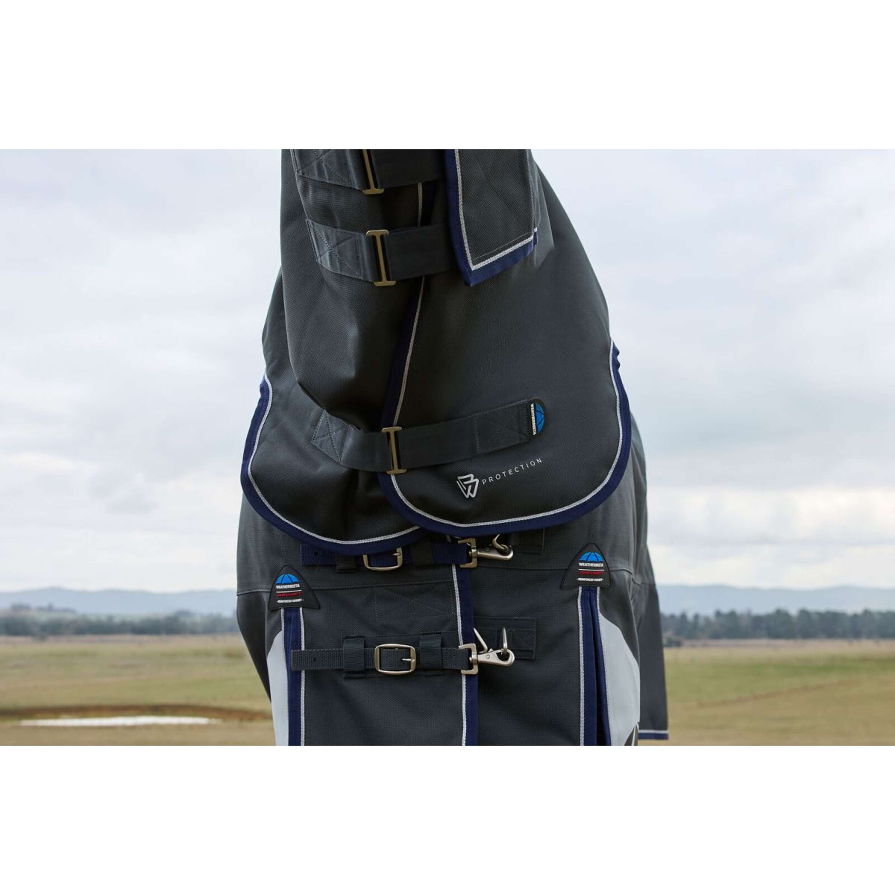 • Ajuste seguro: Se entrega mediante correas para las piernas ajustables y extraíbles con una solapa de cola envolvente completa con un diseño de 3 piezas que envuelve el cuartos del caballo para una máxima protección contra la intemperie