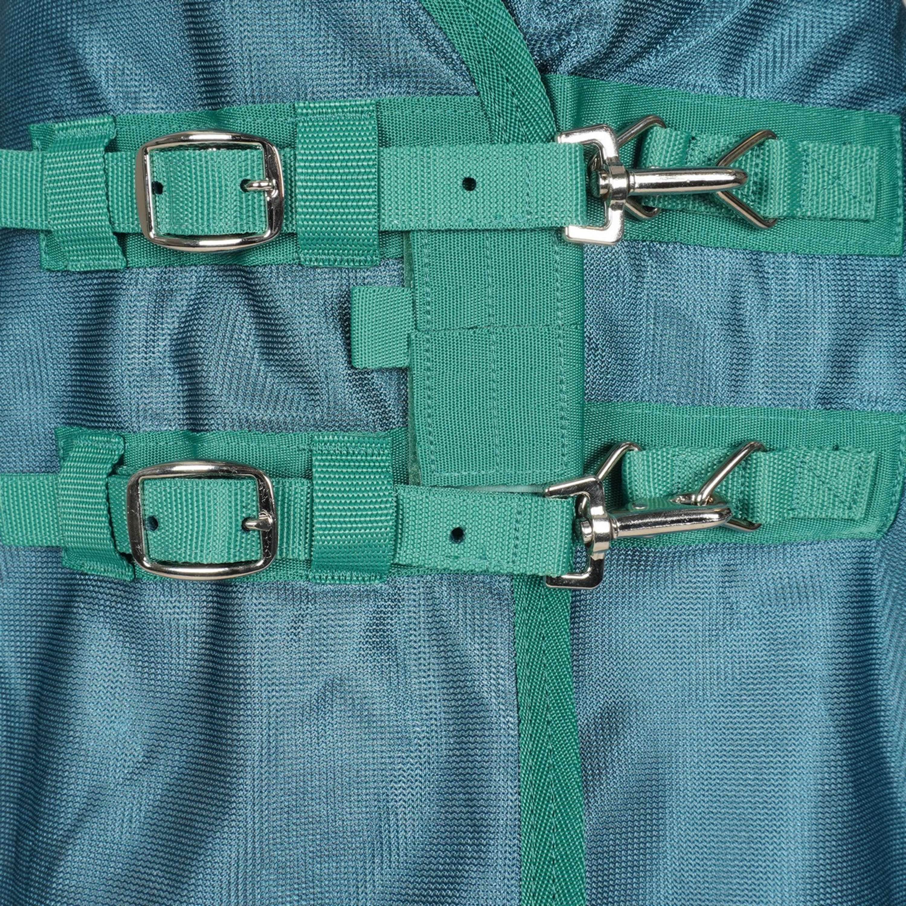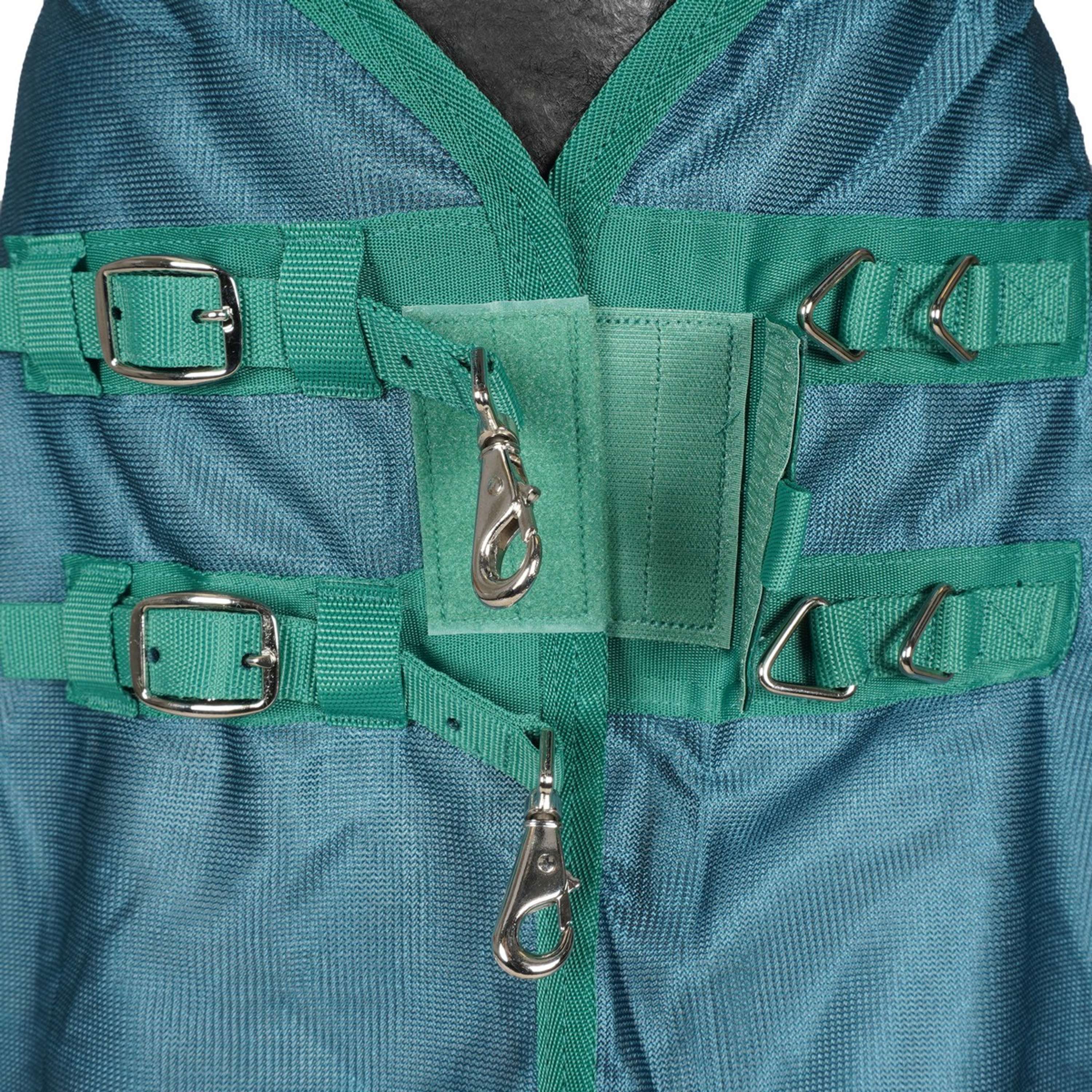 La Weatherbeeta Green-Tec Airflow Mesh Combo Neck cuenta con cierres ajustables y un diseño que se adapta perfectamente al cuerpo del caballo. Es cómoda, segura y fácil de poner, ¡sin dramas ni peleas al intentar colocarla!