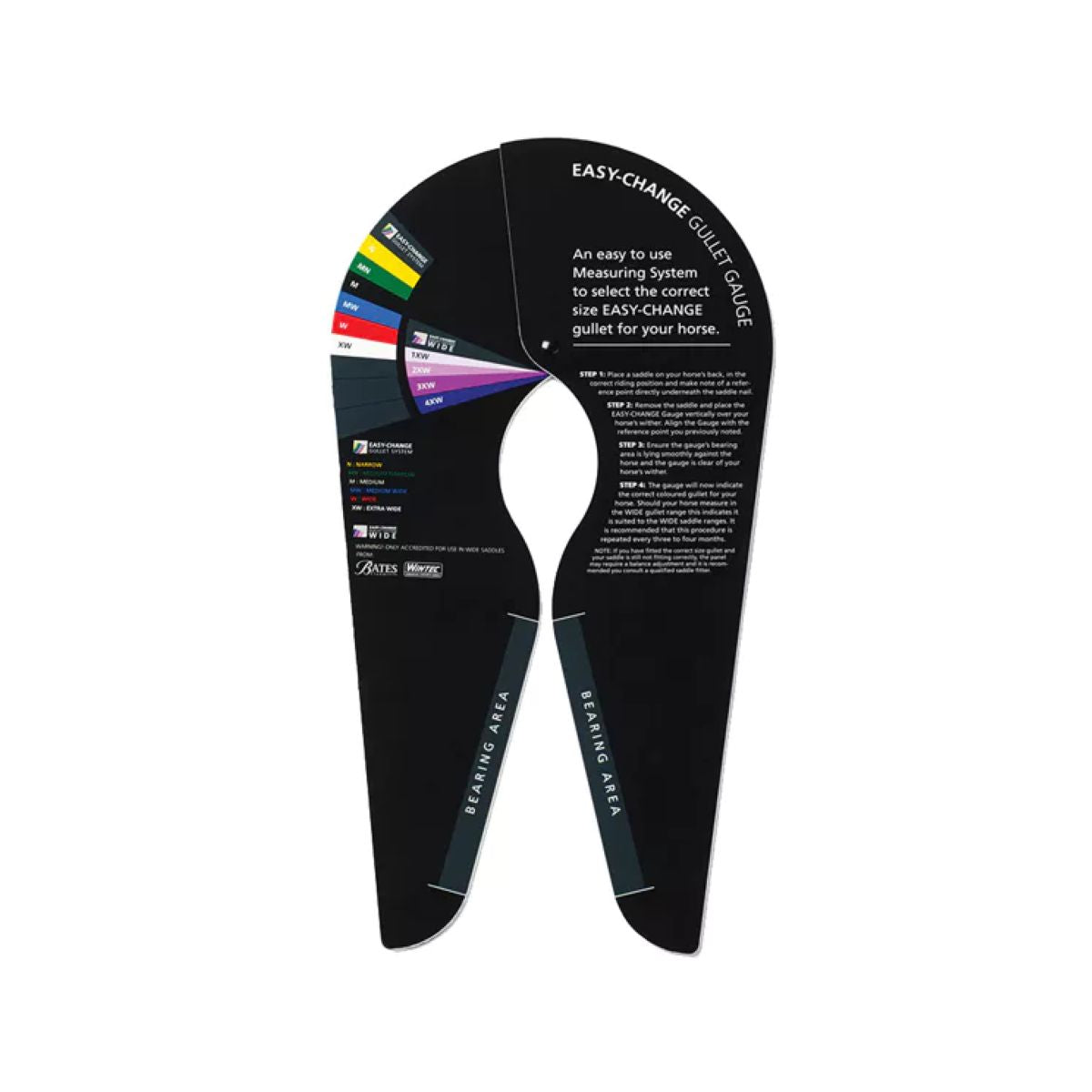 Un medidor de árboles de silla de montar para averiguar qué árbol se adapta al tipo de cuerpo de su caballo. Para sillines Bates o Wintec con el sistema estándar o XL de cambio fácil.